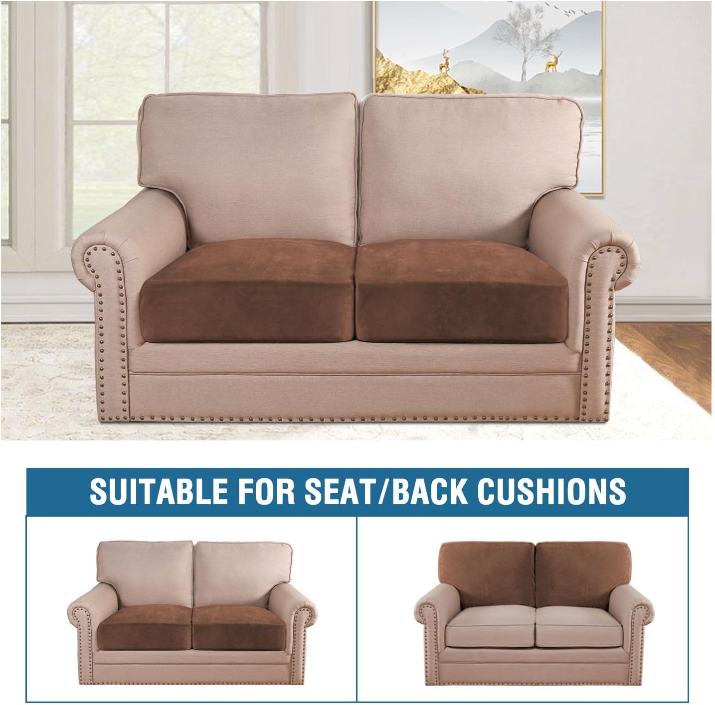 H.VERSAILTEX Velvet Stretch Couch Cushion Cover Plush Cushion Slipcover for Loveseat Cushion Furniture Protector Seat Cushion Sofa Cover (2 Piece Medium Sofa Cushion Covers, Caramel)