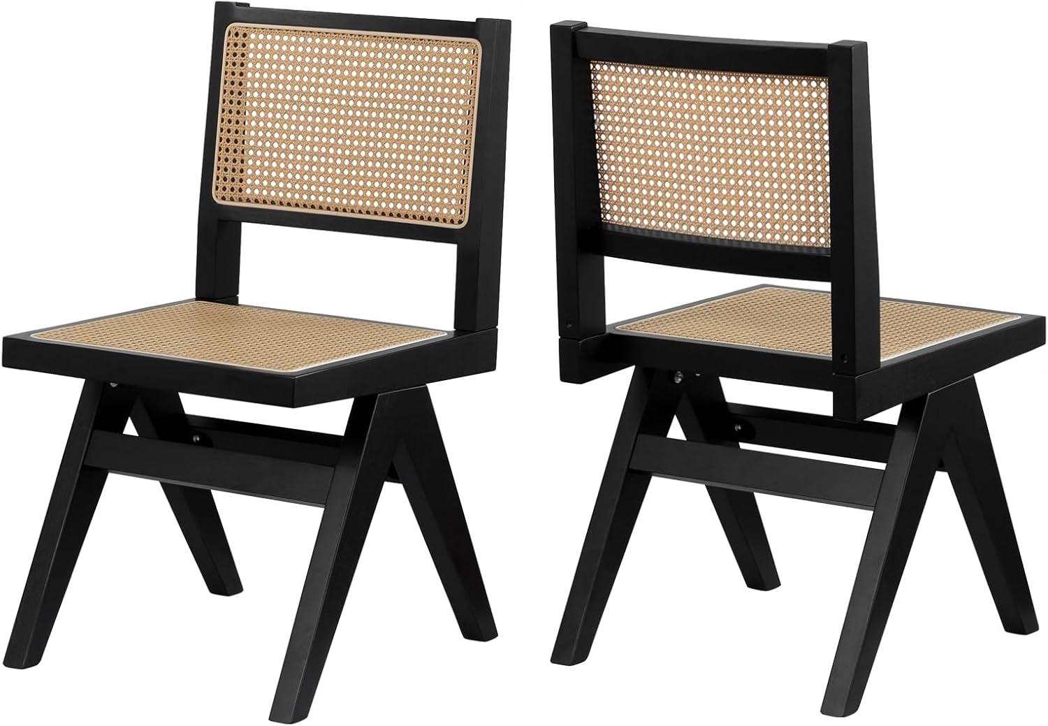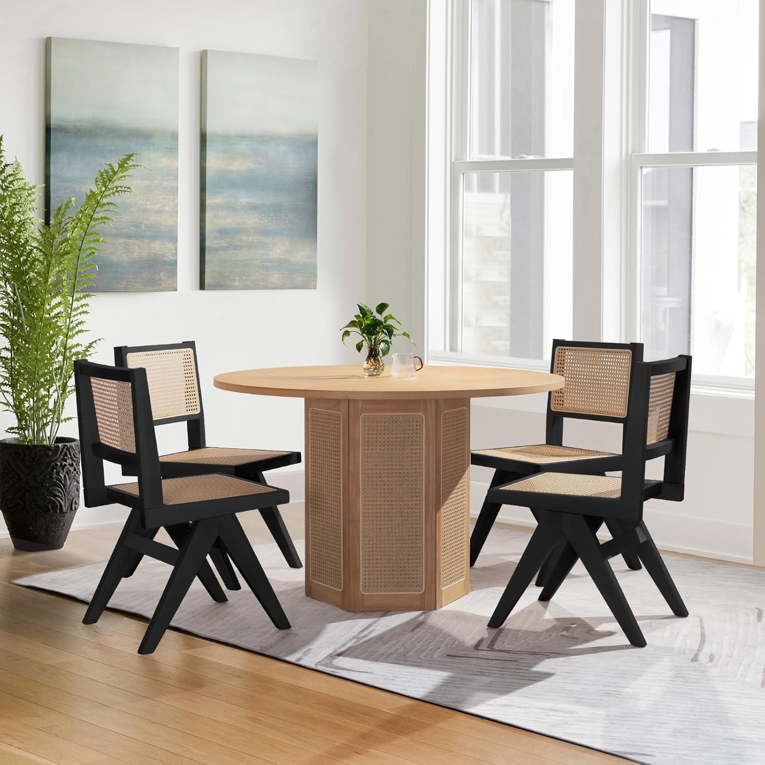 - 【Breathable】The backrest and seat are made of rattan weaving, which is fine and transparent, increasing the breathability of the chair while retaining the natural texture and touch. The rattan backrest not only adds visual lightness, but also brings a hint of nostalgic retro flavor.