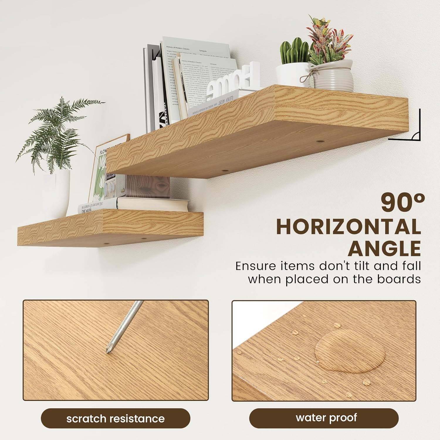 - DEEPER & THICKER SHELF - Our floating shelves measure 35.4W x 11.6D x 2H, deeper and thicker than usual wall shelves, which create more storage and display space for your home