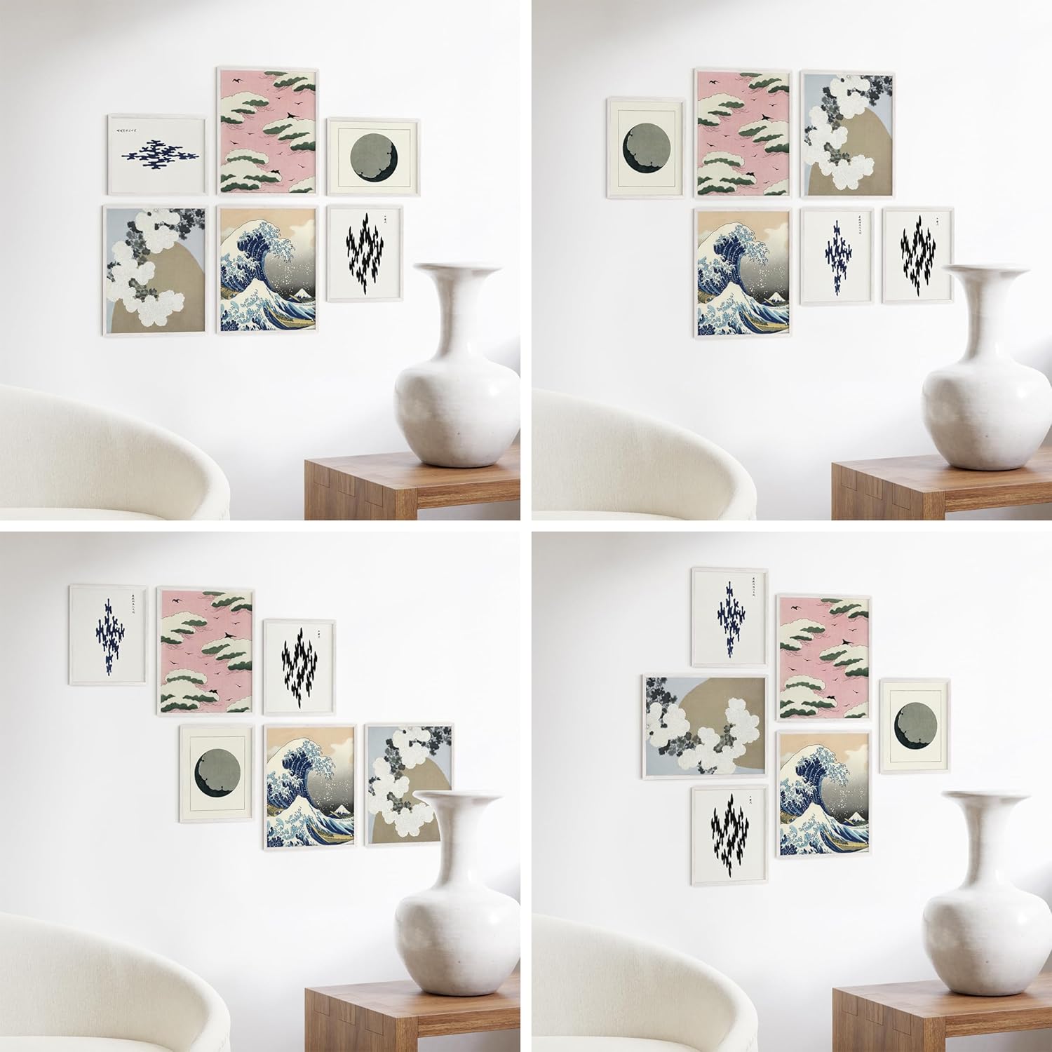 - COLLAGE FRAMES FOR WALL: Our picture frames in bulk are lovely displays that come in many arrangements and themes. Our white wall collage picture frames set is perfect if you need to create a KWS for your bedroom, living room, dining room, den, or office. This set of six stunning white 8x10 and 11x14 frames can be arranged on the wall together as they create a simple, clean look; or can be separated into multiple areas around your home or office, depending on your framing or styling needs.