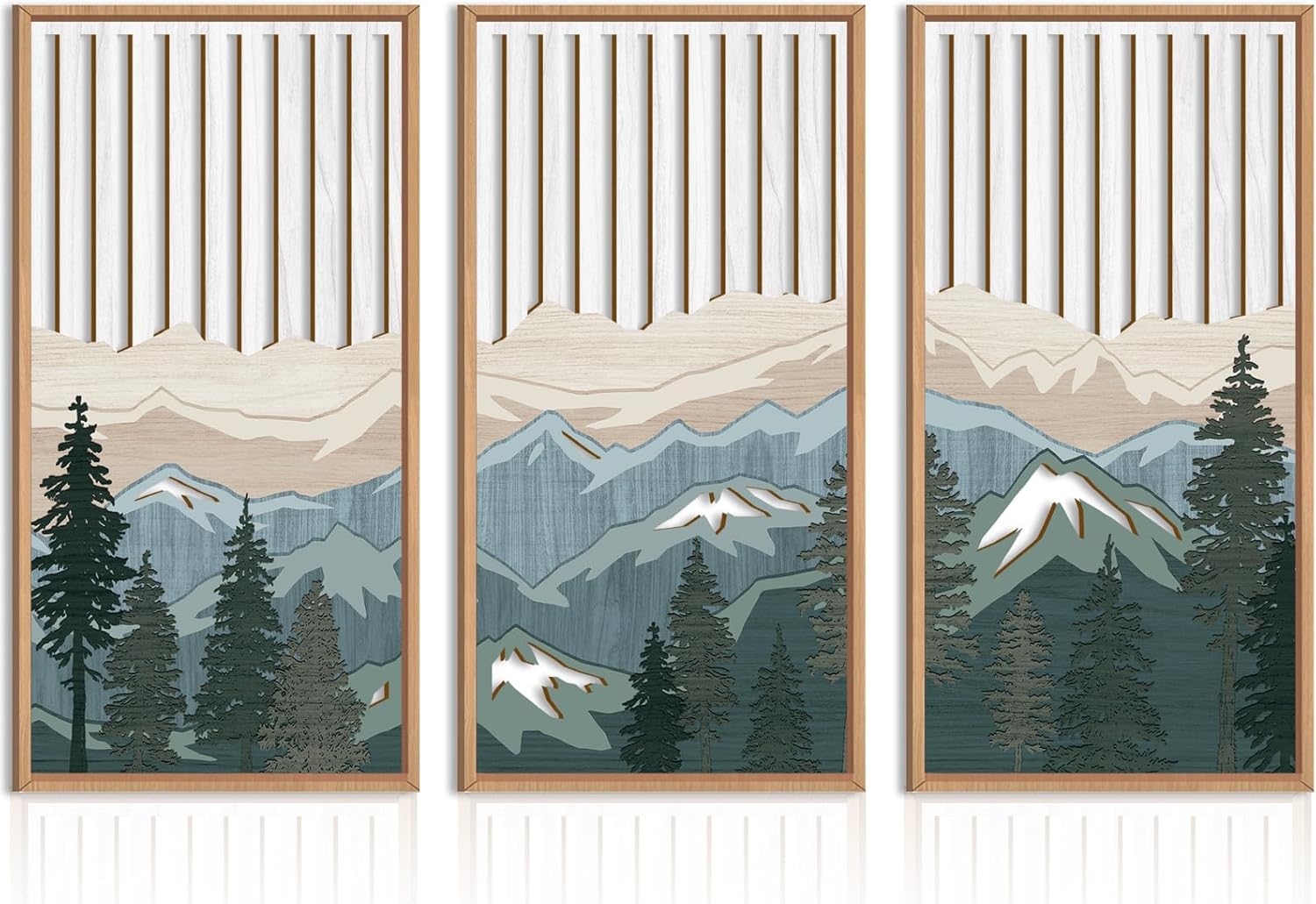 IARTTOP Large Mountain Wood Wall Art Framed Decor Set Of 3, Modern Mountain Landscape Wall Art Nature Artwork Wall Decor For Bedroom, Living room, Office-16 x32