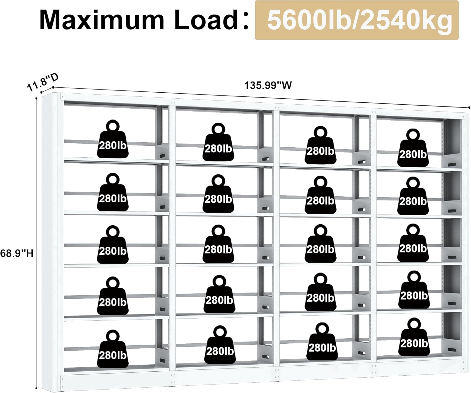 - 【Adjustable Bookends】There are bookends on the back to stop the books from falling. Size: H68.9*W135.9*D11.8 inch.Taller bookshelves and wider bookshelves.
