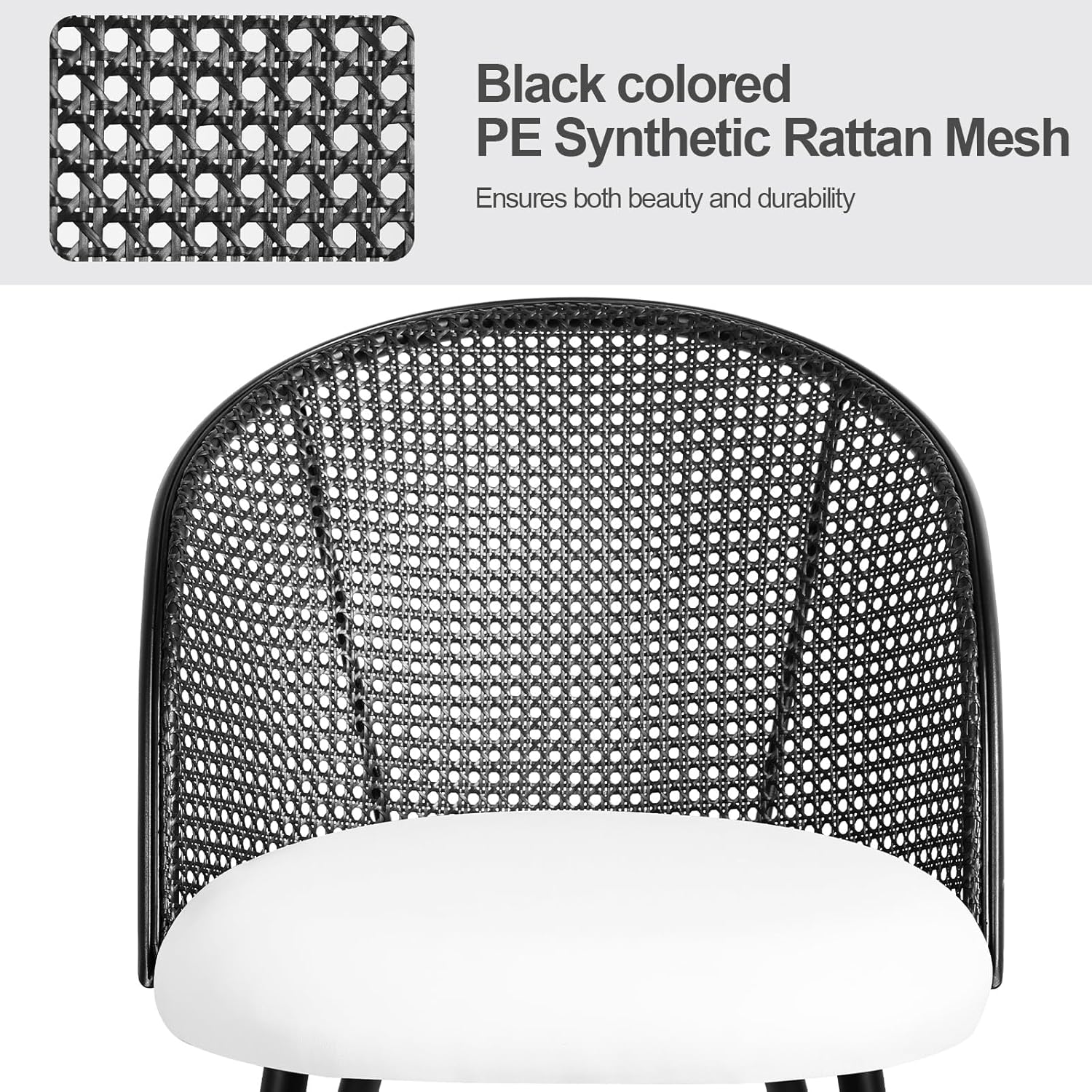 - 【Modern Mid-Century Style】Embrace timeless elegance with these dining chairs set of 4 featuring a sleek black rattan backrest. The powder-coated black metal legs add a contemporary touch, while the intricately crafted rattan cane back brings a classic charm, creating an inviting atmosphere in any dining space