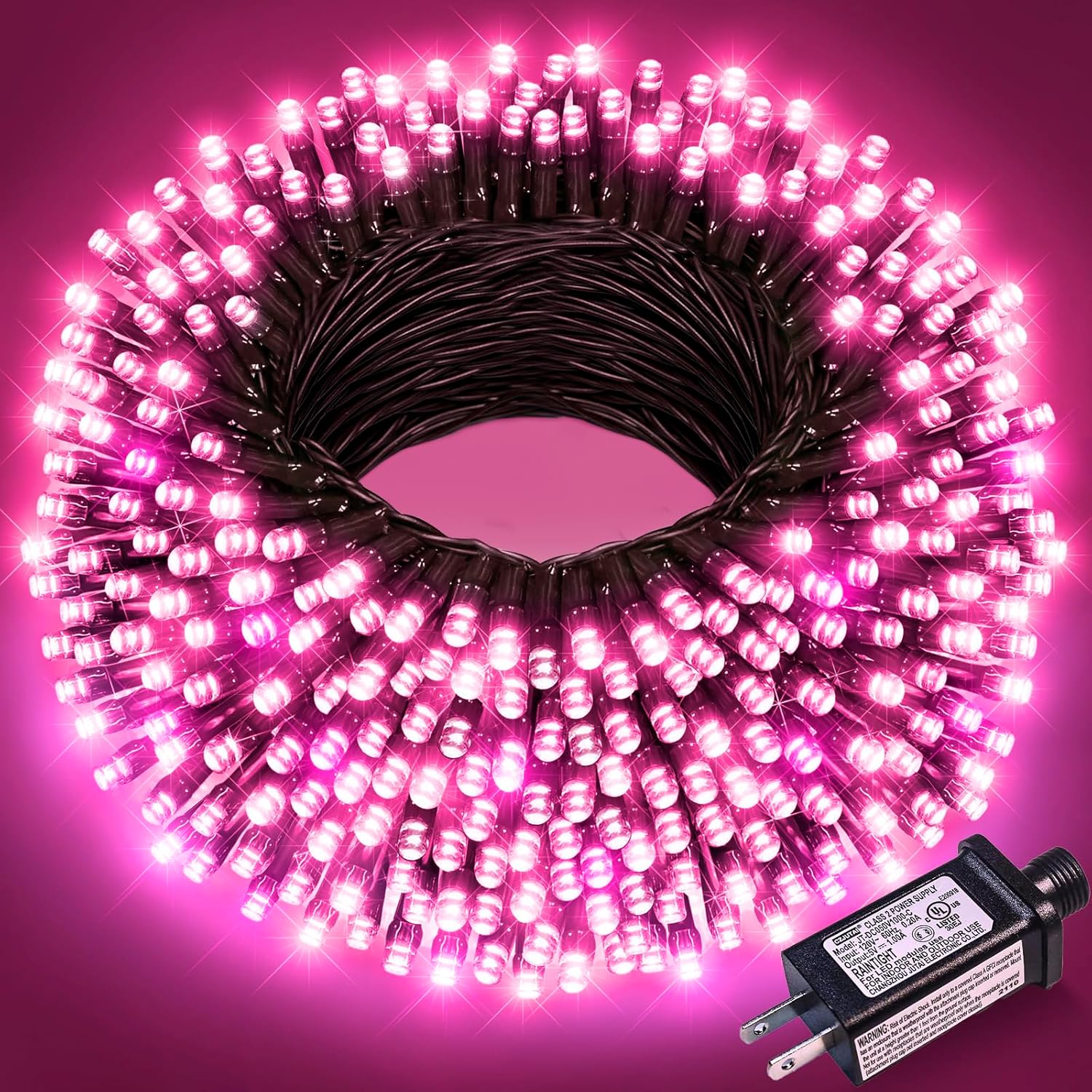 100FT 300 LED Christmas Lights Outdoor, Green Wire Christmas Tree Lights with 8 Modes Waterproof, Connectable String Lights for Outside for Indoor Garden Patio Party Wedding Decorations, Pink