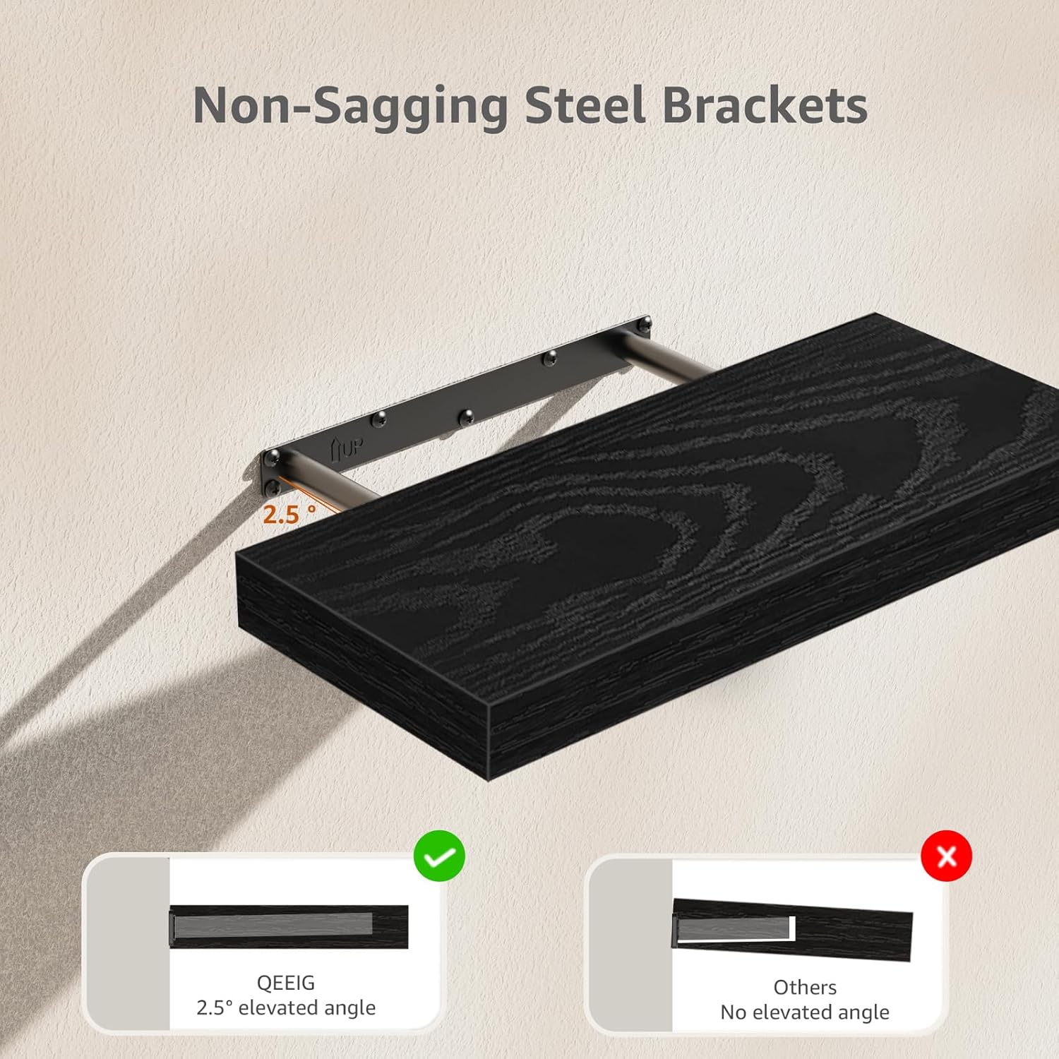 - Sturdy Support: Enhanced steel brackets hold up to 25 lbs, 2.5° upward angle design ensures long-term stability, preventing tilting or sagging
