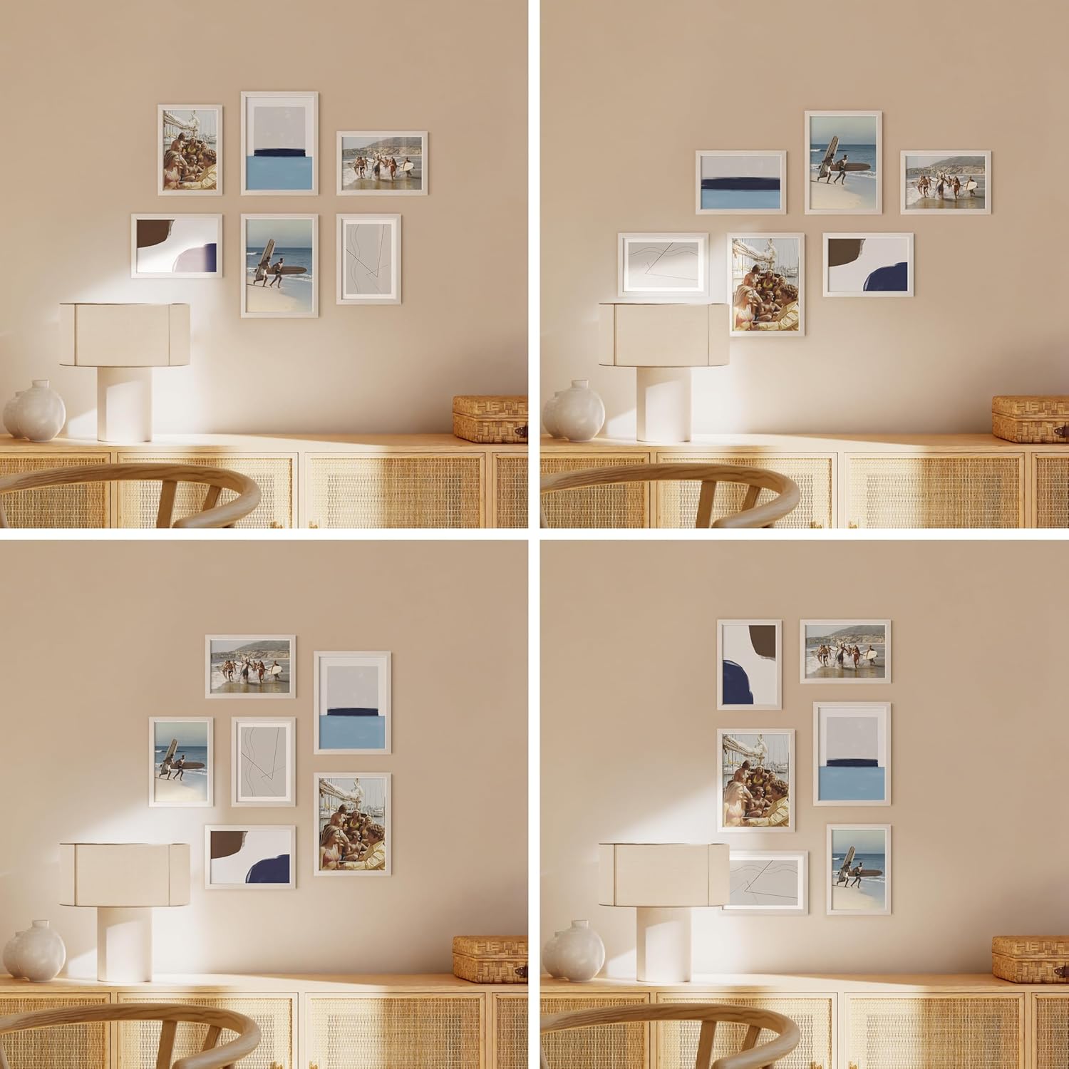 - GALLERY WALL FRAME SET: Our white photo frames is meticulously constructed using natural oak wood, known for its timelessness and durability. The slim profile of the (keyword3) effortlessly blends into any interior decor, adding a contemporary touch. The clean lines and sleek design make the photo gallery wall frame set a great choice for those seeking a stylish, understated display solution