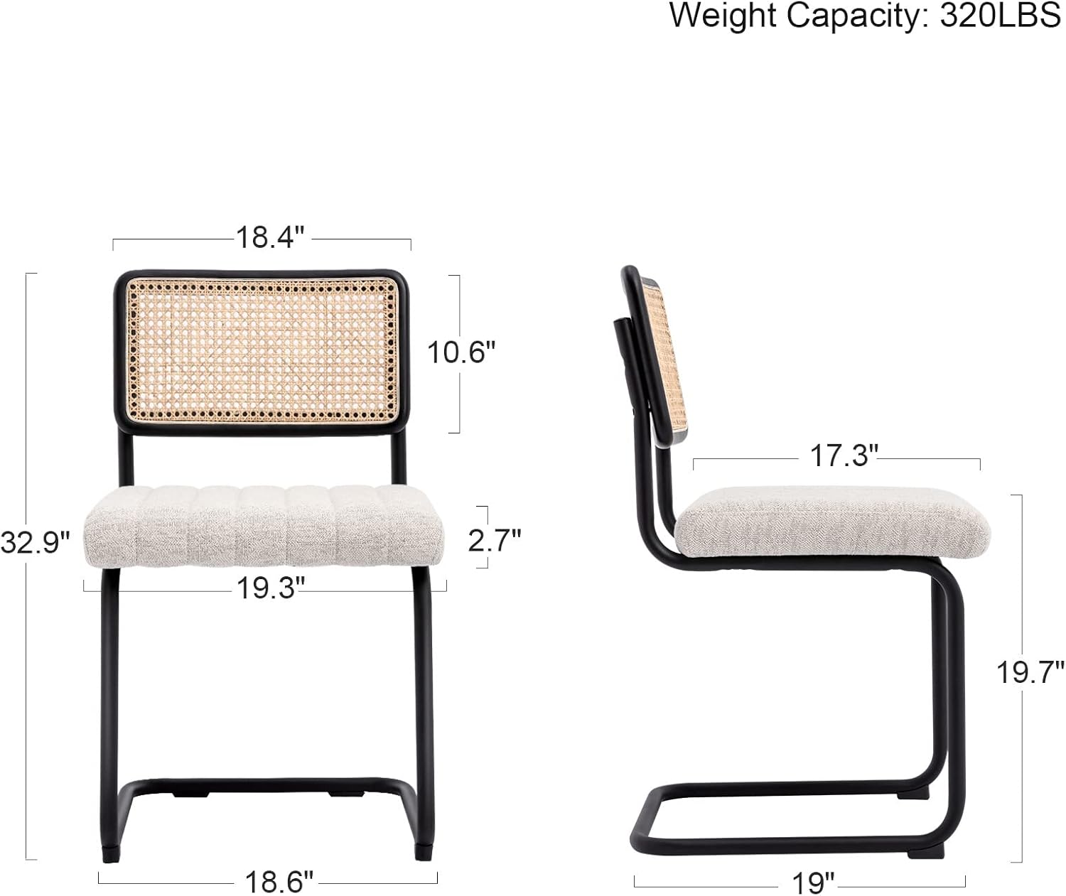 - Maximum Load Capacity 300 lbs: The cantilever construction is sturdier than you expect, with high-quality metal tubes and thicker cushions, ensuring that these accent chairs will last for years to come. Upholstered in a wear-resistant linen fabric, these rattan chairs offer both comfort and sophistication