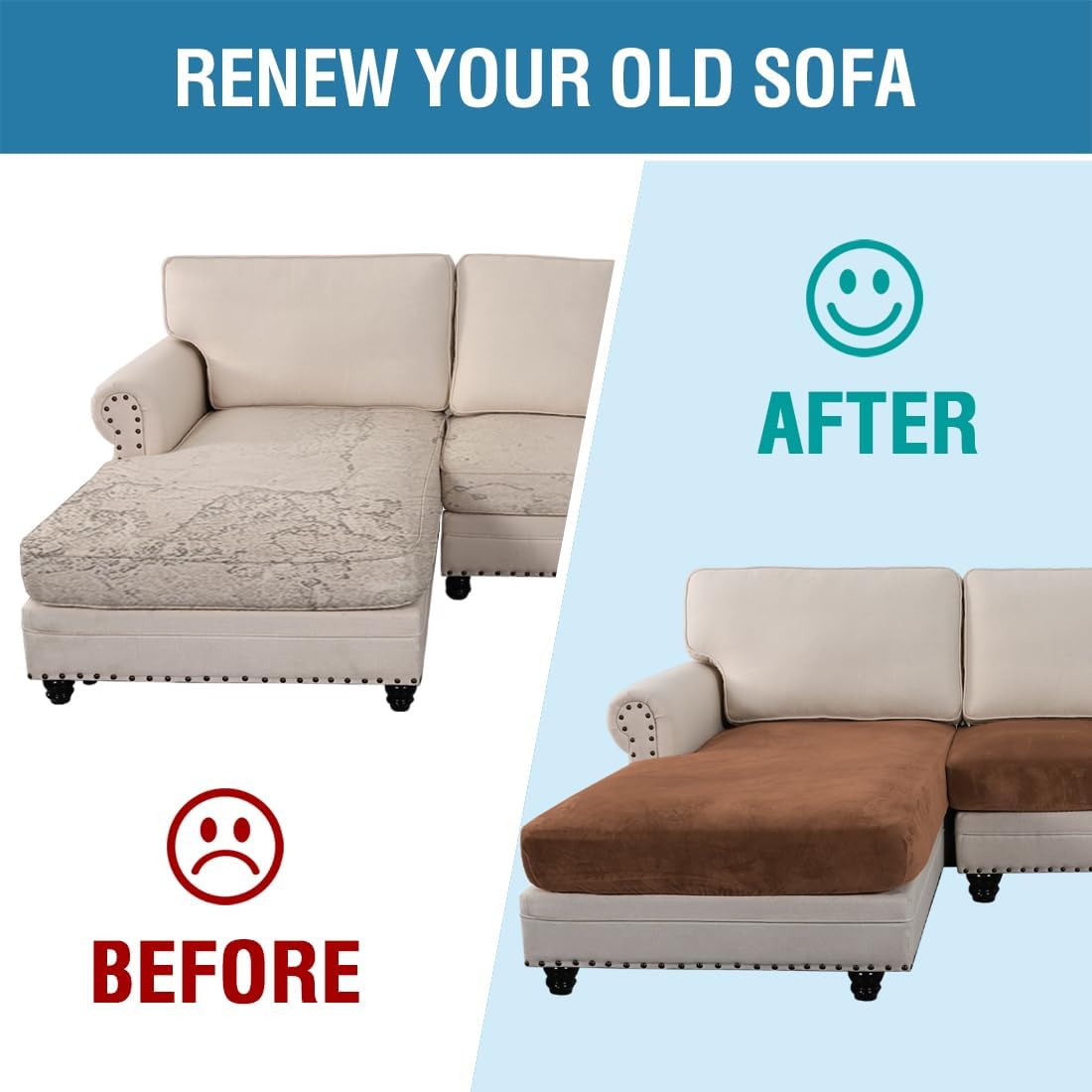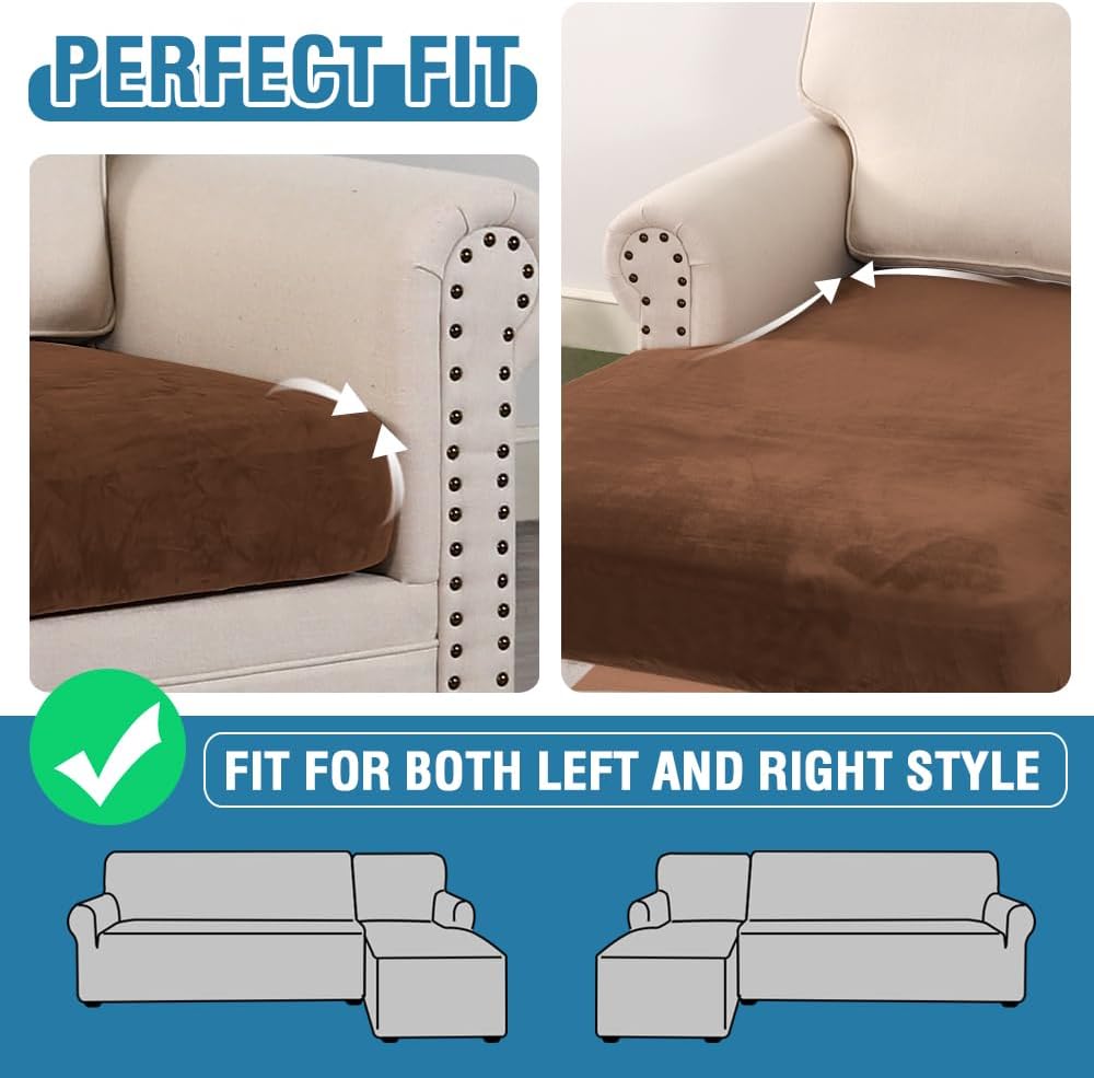 - INCREDIBLY COMFORTABLE VELVET: Products passed GLOBAL RECYCLED STANDARD certificate.This innovated stretch sofa slipcovers are constructed with 3 PIECES,including 1 Chaise cover and 2 individual cushion covers. Crafted from luxurious velvet plush fabric, feature thick, soft, smooth, anti-wrinkle, no fading, durable as well as highly stretch. Protect your cushion furniture from daily wears and tears, stains, kids, scratches from pet claws, dogs or accidental spills