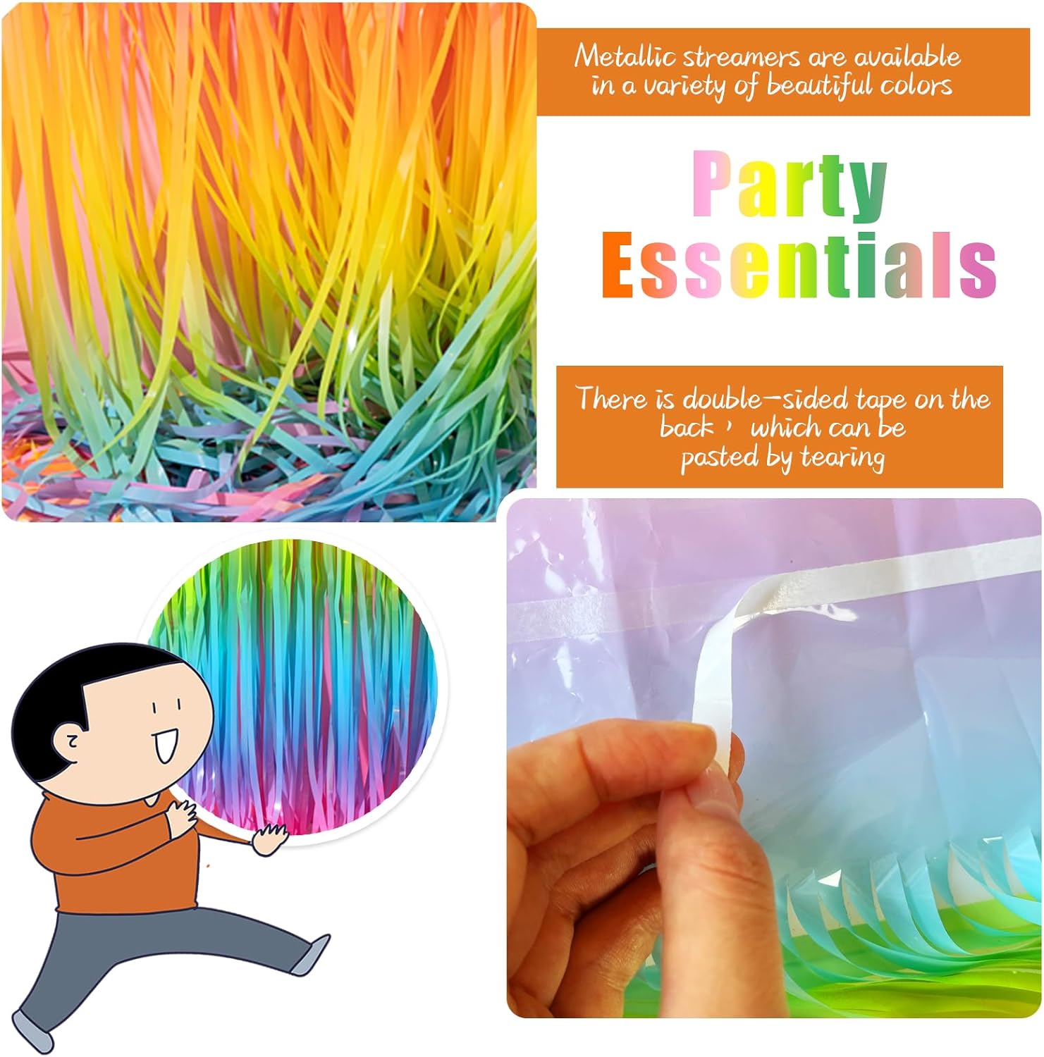 - Pastel Easter Decorations:The back of fringe curtain has double-sided tape, which can be stuck very firmly to any place you want such as walls, tables, door frames. You can use scissors to cut the length you want, and you can use two or more pieces of the curtain to splice and overlap.