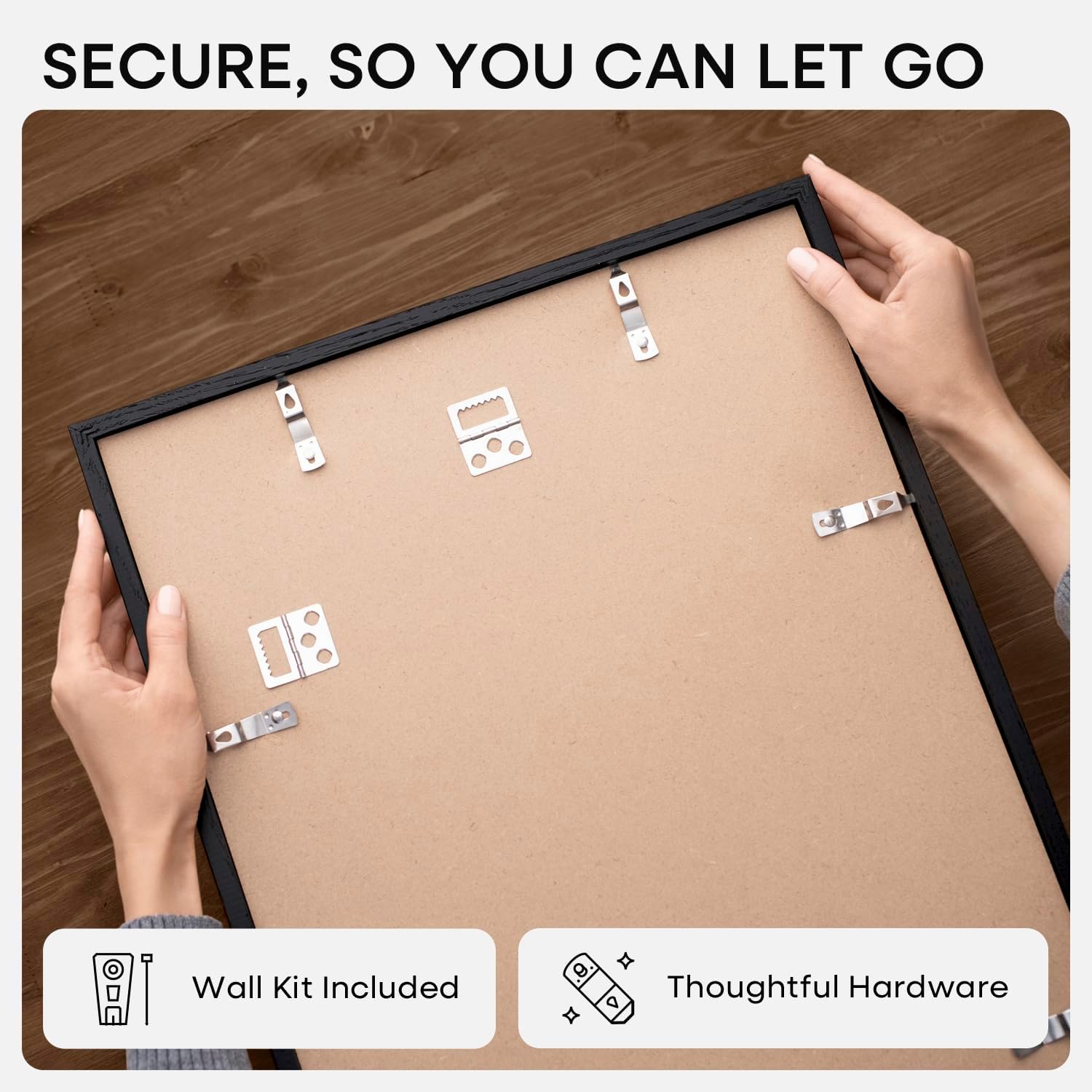 Homeforia 20x28 Black Wood Frame, High End Oak 20x28 Wooden Picture Frames with Mat 14x22 Photo, 20 x 28 Poster Frame Matted to 14 by 22 Print, 28x20 Hanging Frames, Tempered Glass, Wall Kit, Set of 1