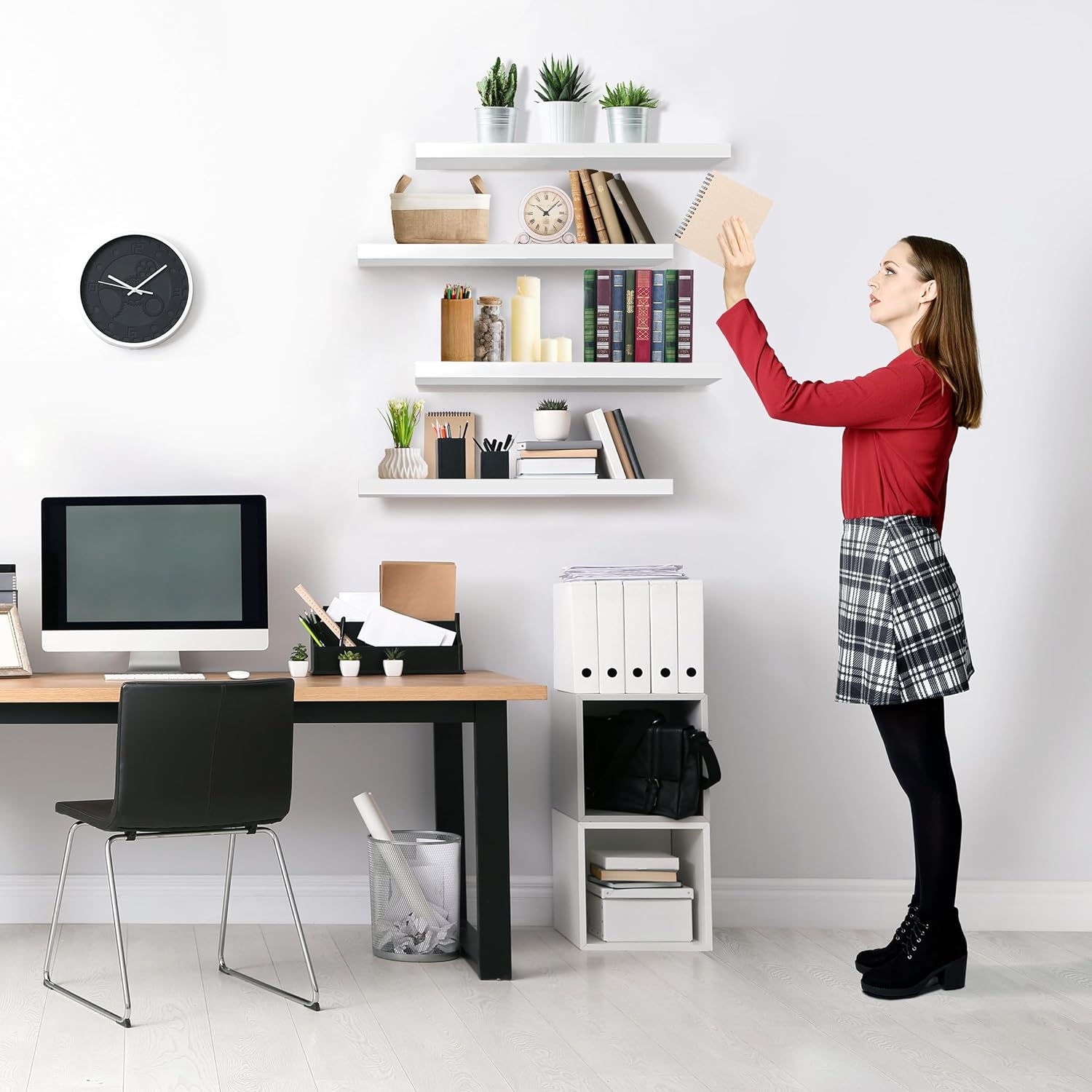 - Free Up Space in Your Home & Kitchen: Reduce clutter and highlight bedroom decor - These shelves for wall storage give the illusion of a larger space in a studio apartment, dorm room, or small living quarters - Easily modify your floating wall shelves to fit your needs - Display succulent plants, collectibles, trophies, photos, frames, and books