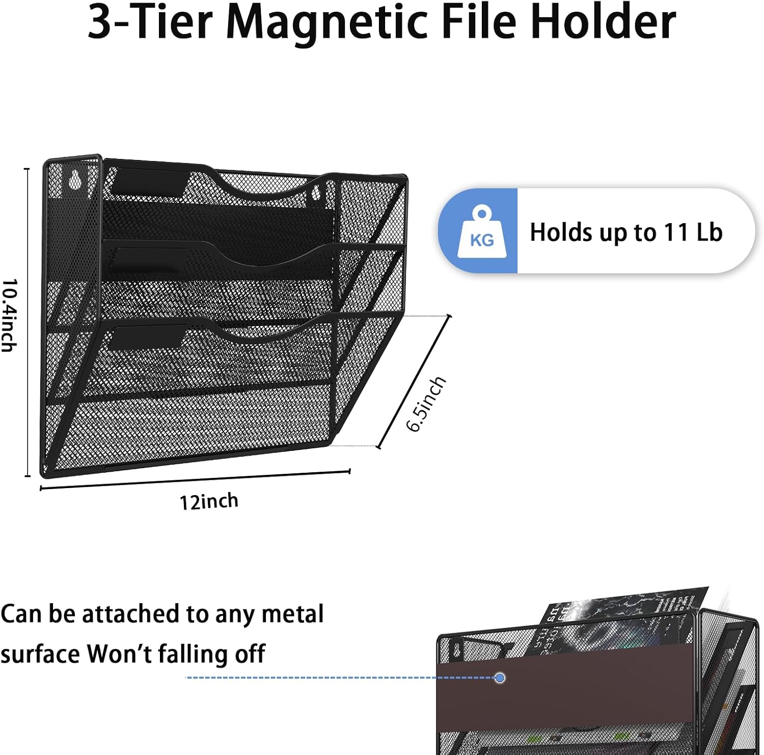 - 【Durable Metal Construction】Crafted from high-quality metal with an attractive mesh wire design, this magnetic hanging file organizer features a durable powder coat finish that is resistant to oxidation and rust. Please exercise caution when removing the product from an iron surface due to its strong magnetic force.