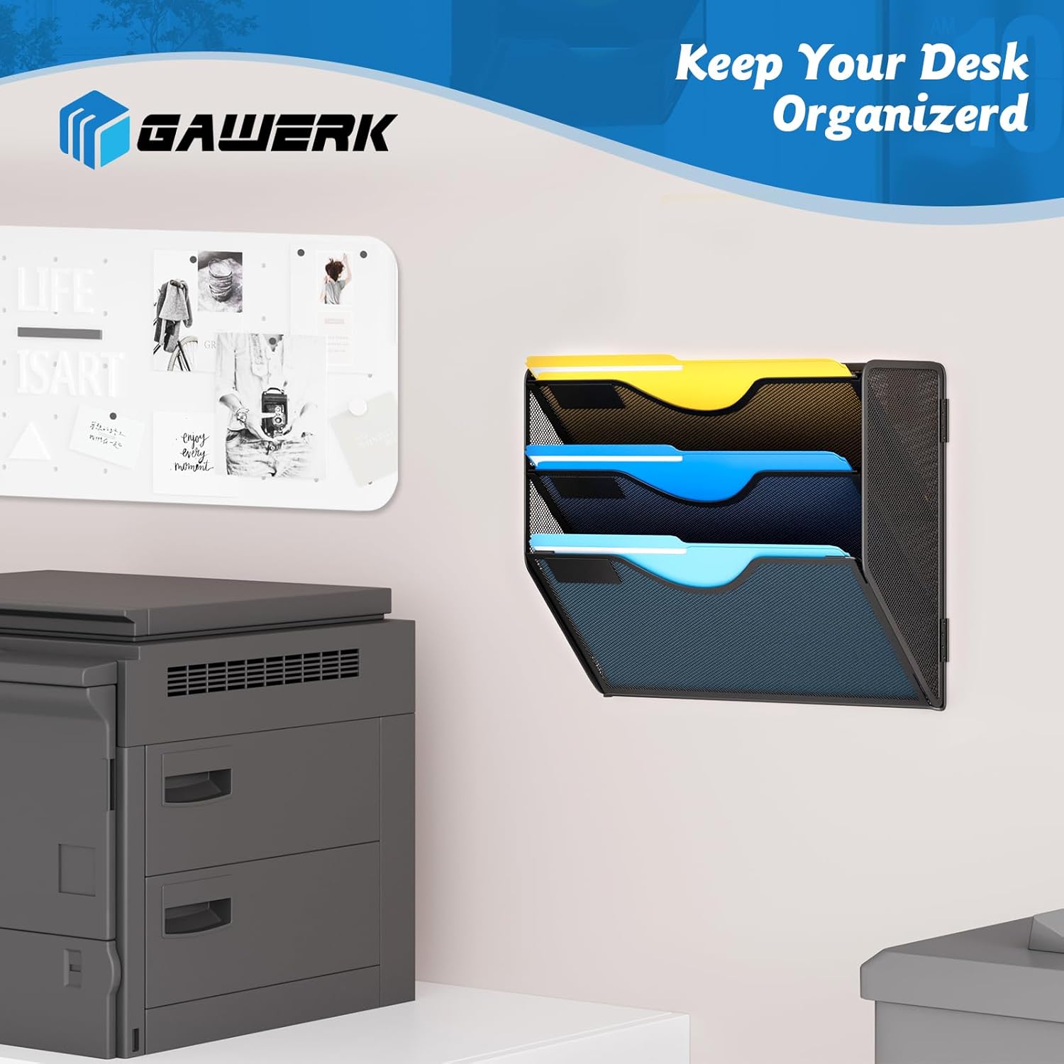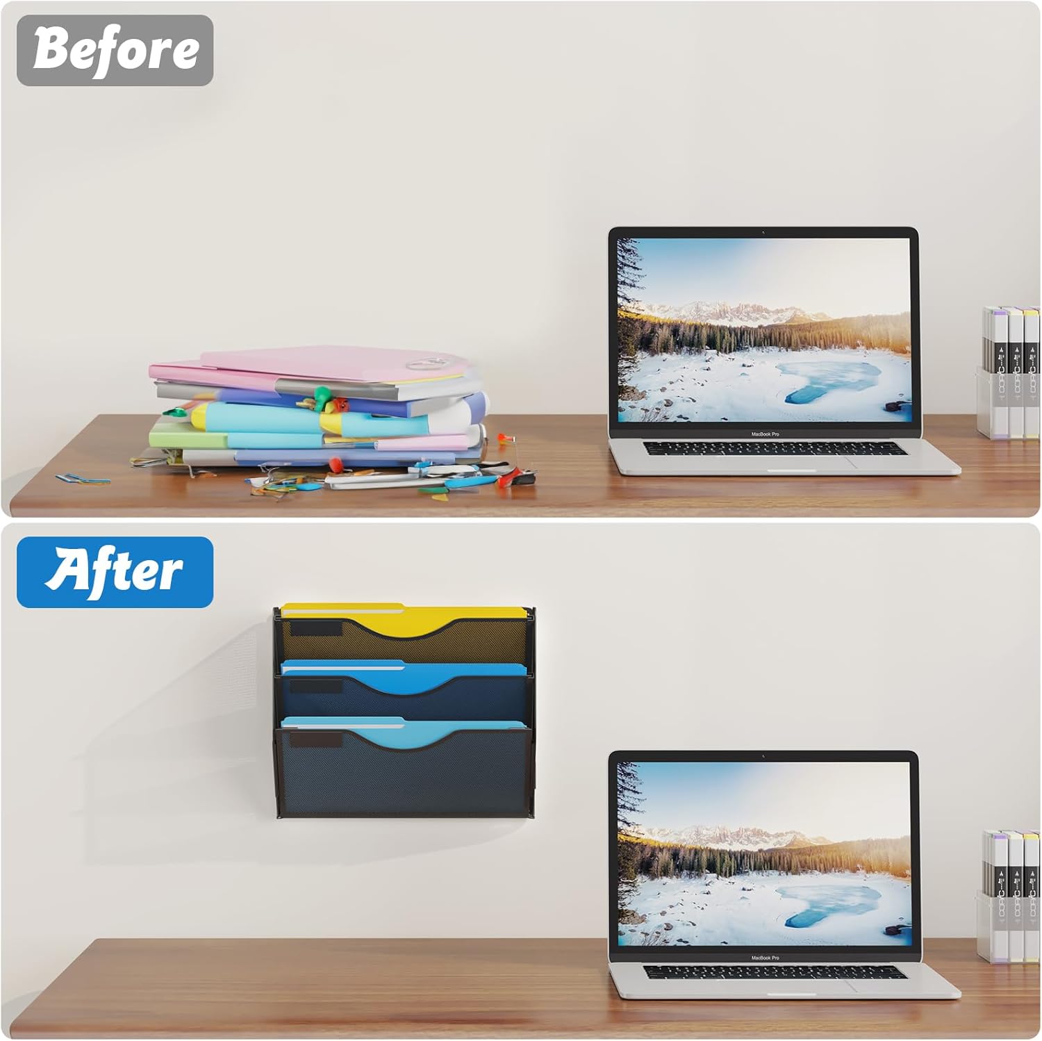 3 Tier Hanging Wall File Organizer, Mesh Mail Paper Orgnization Hanging File Folder Holder for Home Office, Black