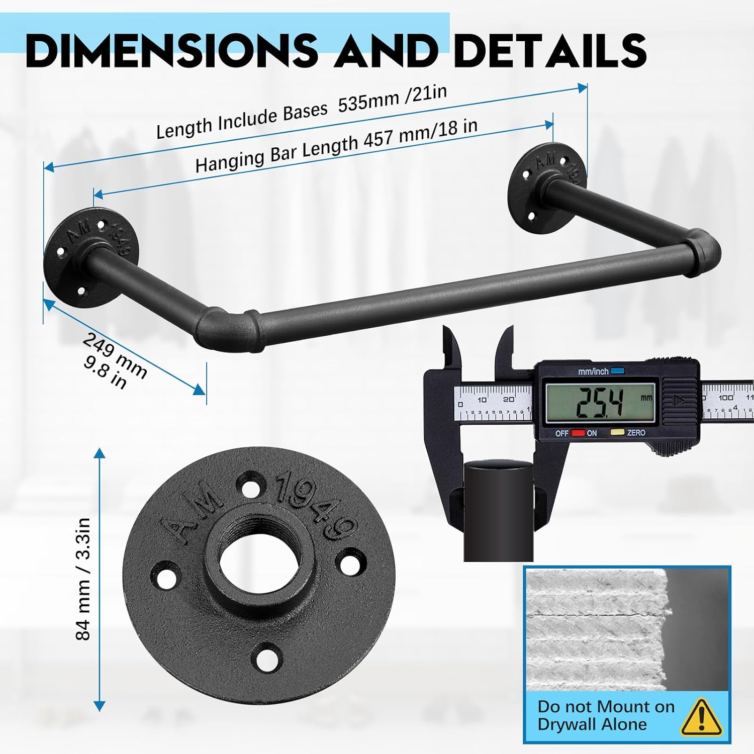 - 【Durable And Sturdy】The clothing rack is made of a 1" dia iron pipes, makes it durable. Also more importantly can holds up to 100 lb when mounted to a solid wall