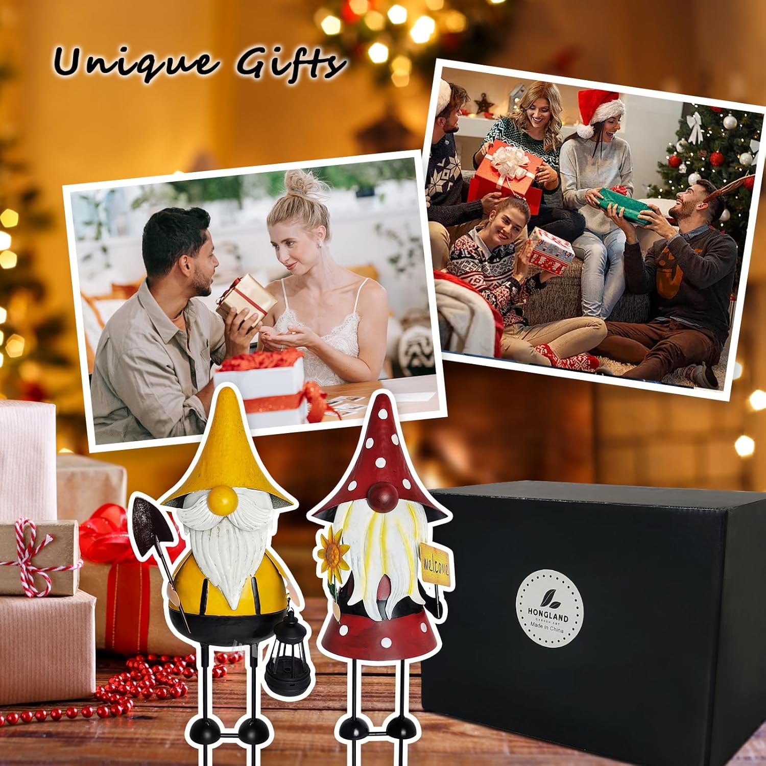 HONGLAND Metal Gnome Yard Art -18 Inch Metal Gnome Statue Garden Decor -3D Garden Outdoor Decorations -Christmas Holiday Lawn Patio Yard Garden Decor