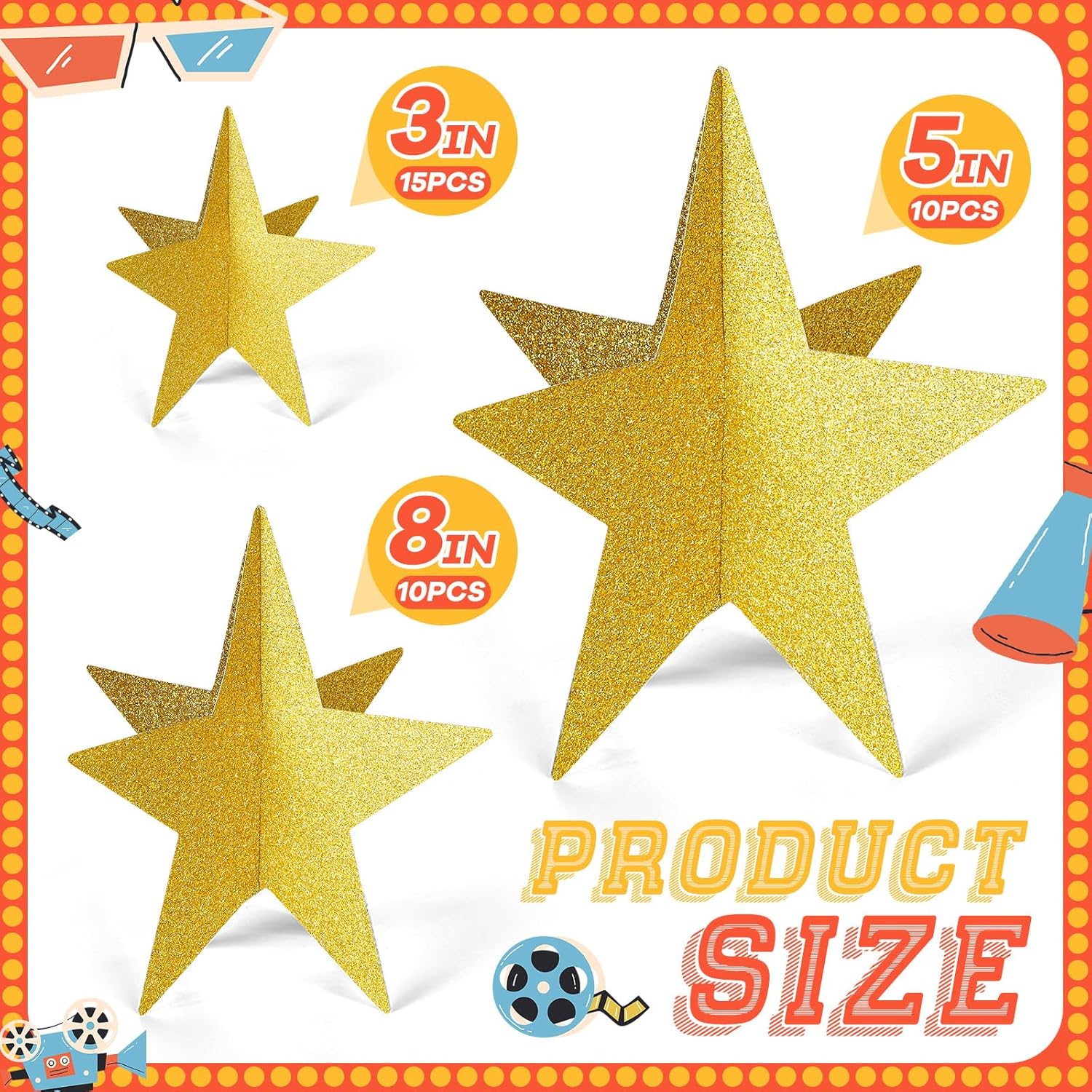 - 3D Feature: our gold 3D star party decorations boast a cool 3D feature that gives them a realistic and appealing look; The ideal choice for movie night party decorations, these 3D designs will add depth to your decor, making your party a fun and enjoyable event