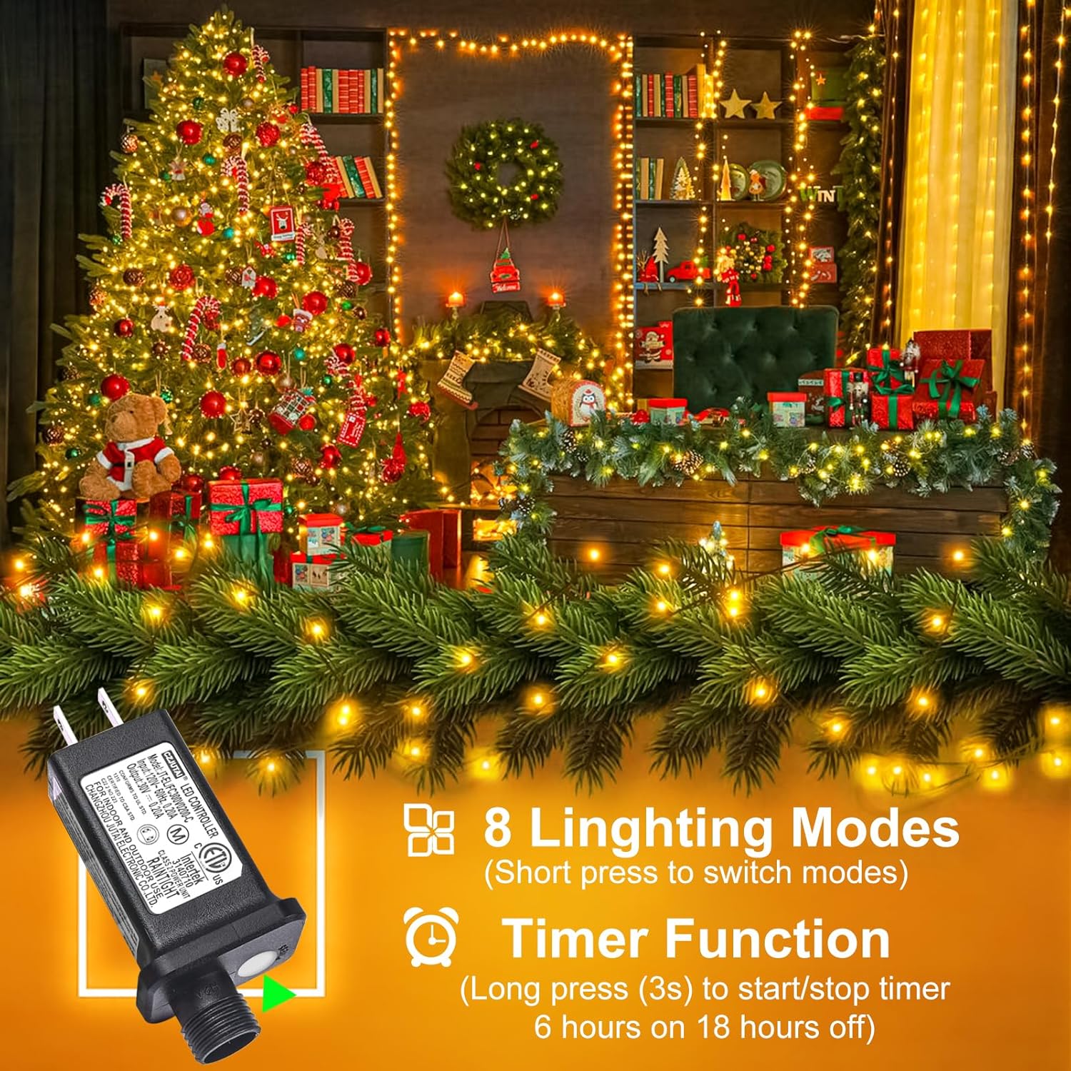 - [Waterproof and Safe]- These plug-in twinkle lights are UL safety certified, 29V output voltage ensures safe to the touch and longer service life. The IP65 waterproof design ensures they work well in wind and rain, making them ideal for year-round decoration. Please note that the power adapter is not waterproof.