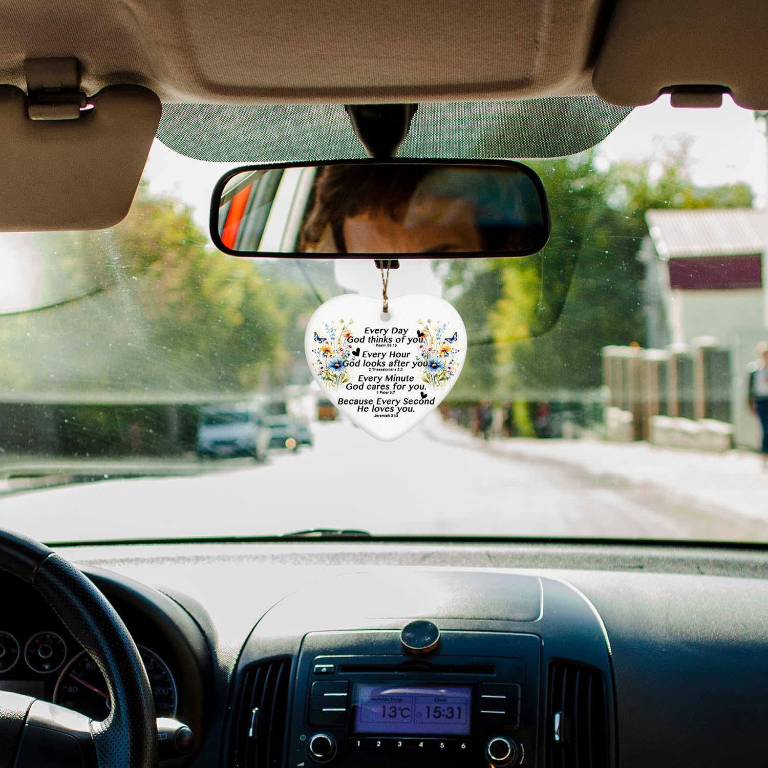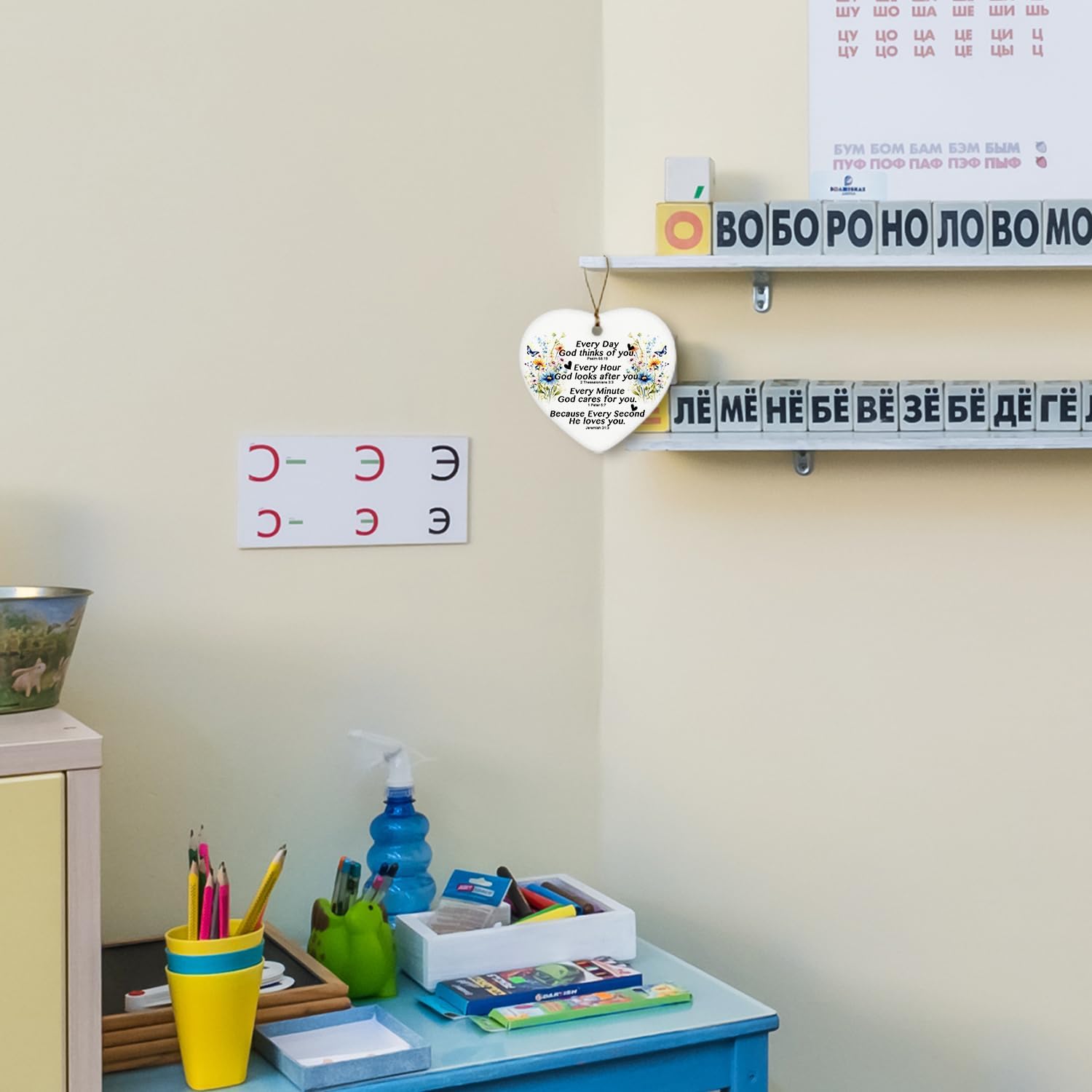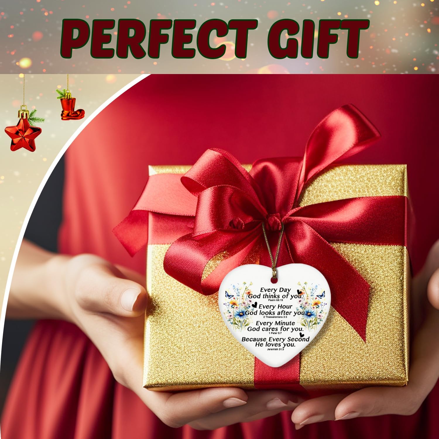 Inspirational Christian Gifts for Women Girls, Bible Verses Floral Ceramic Christmas Ornament Keepsake Sign Heart Plaque, Religious Gifts