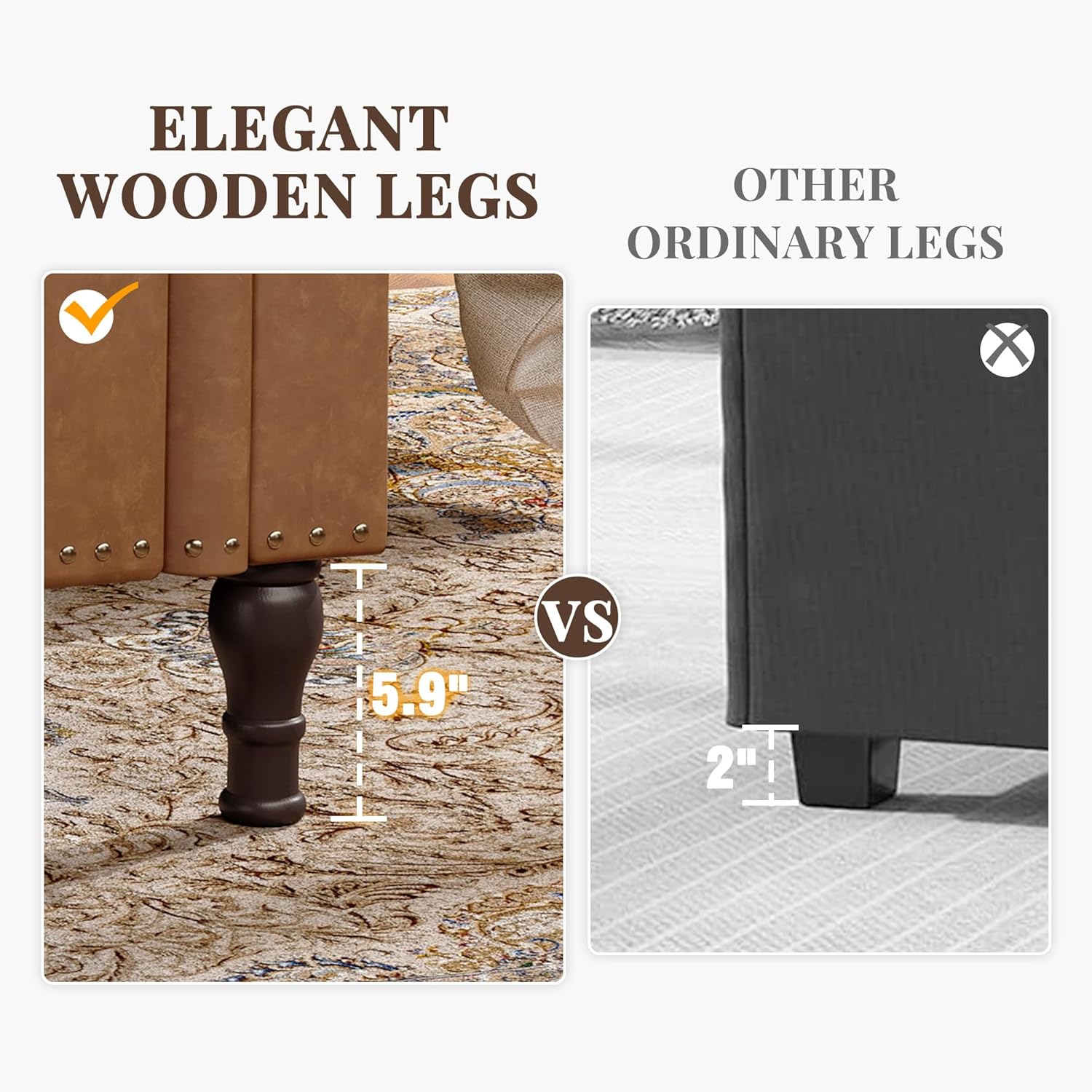 - 【STRUCTURAL STABILITY】The bedroom bench is made of multiple layers of wood panels, providing stable support. The bottom features 5.9 inch high solid wood legs, which are aesthetically pleasing and stable while protecting the floor from scratches. The internal gas rod support structure ensures smooth and steady opening and closing of the seat surface.