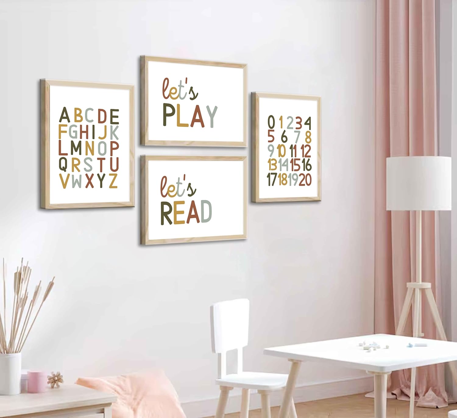 4 Pcs Boho Playroom Canvas Wall Art Nursery Toddler Educational Let's Read Let's Play Painting Pictures Wall Decor Posters Print Artwork for Girl Boy Childs Room Classroom Home Decoration Unframed