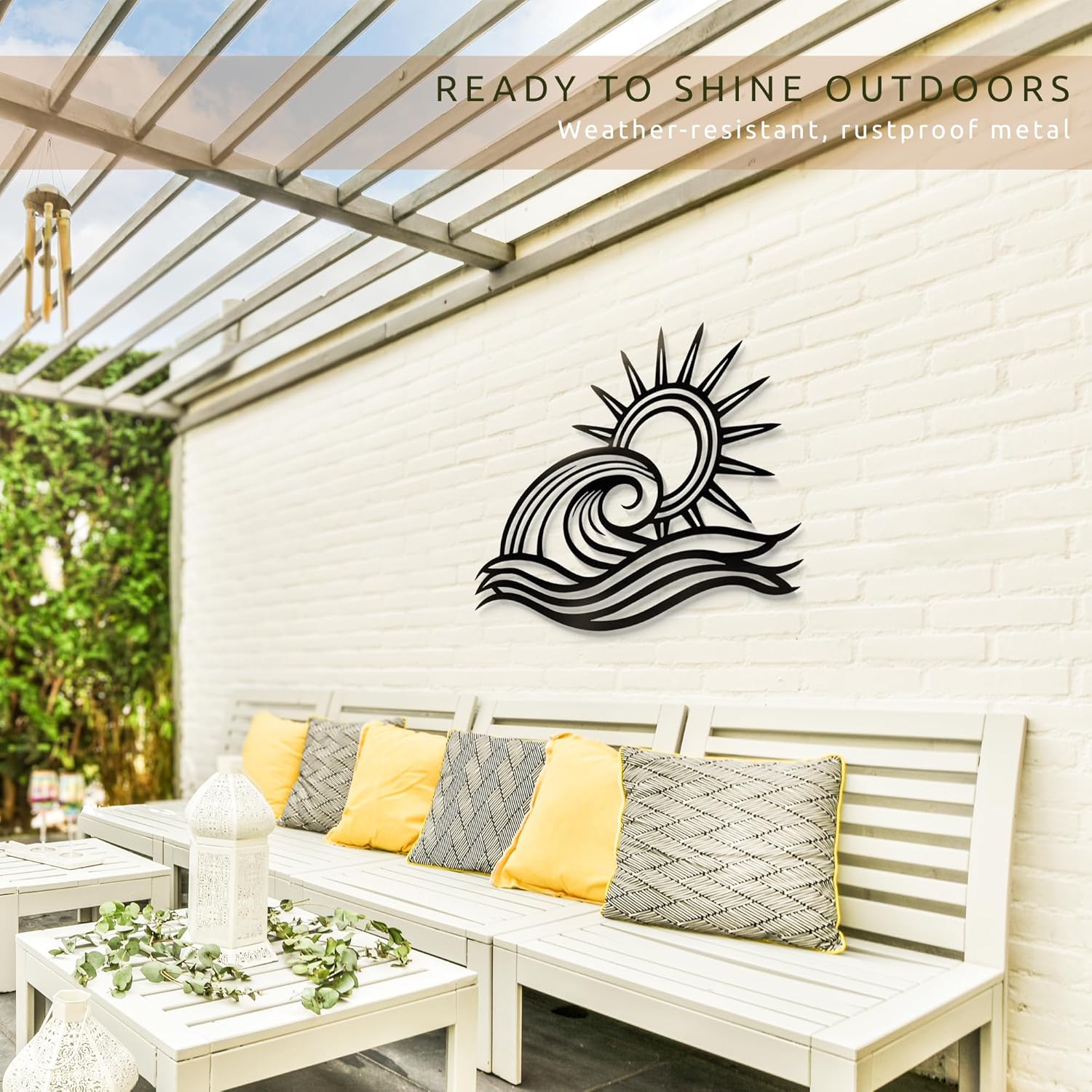 - STYLISH COASTAL DESIGN: Featuring an intricate ocean wave and sun motif, this coastal wall sculpture adds a touch of nautical elegance to any space. Its sleek, modern design complements various decor styles, making it a versatile addition to your home or garden.