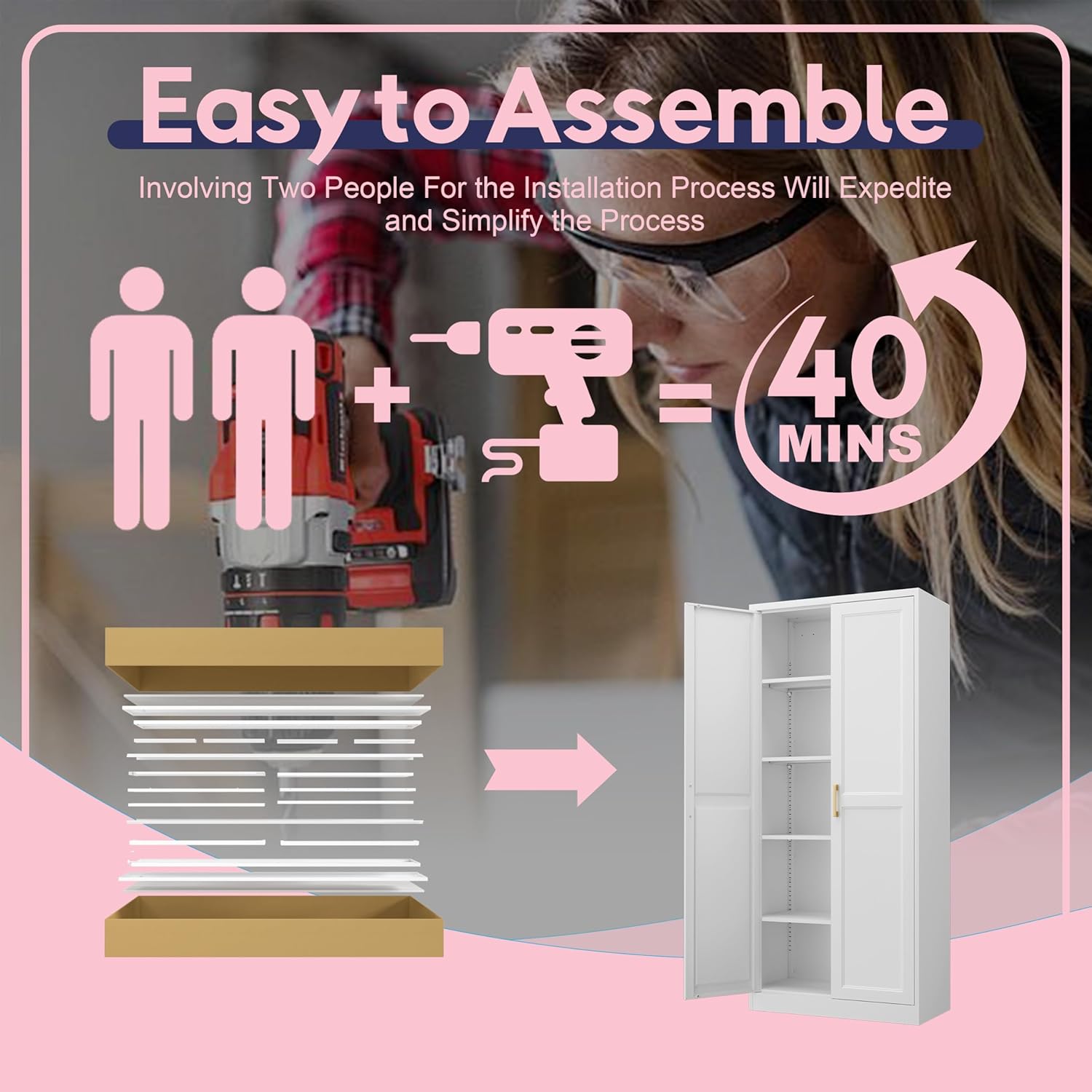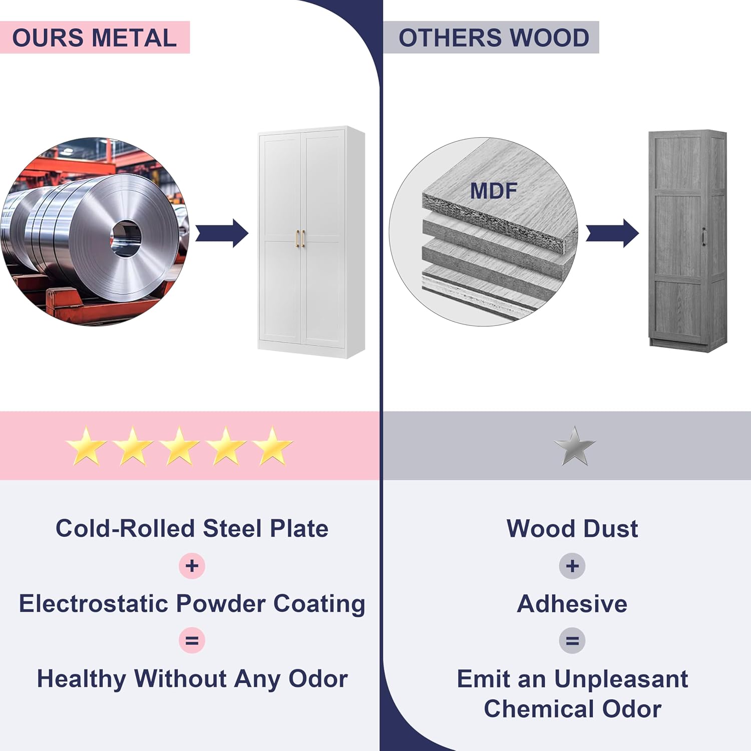 71" Storage Cabinet, Metal Pantry Cabinet, Kitchen Pantry Storage Cabinets with Doors and 4 Shelves, Cabinets for Laundry Room, Living Room, Dinning Room, Assembly Required, White