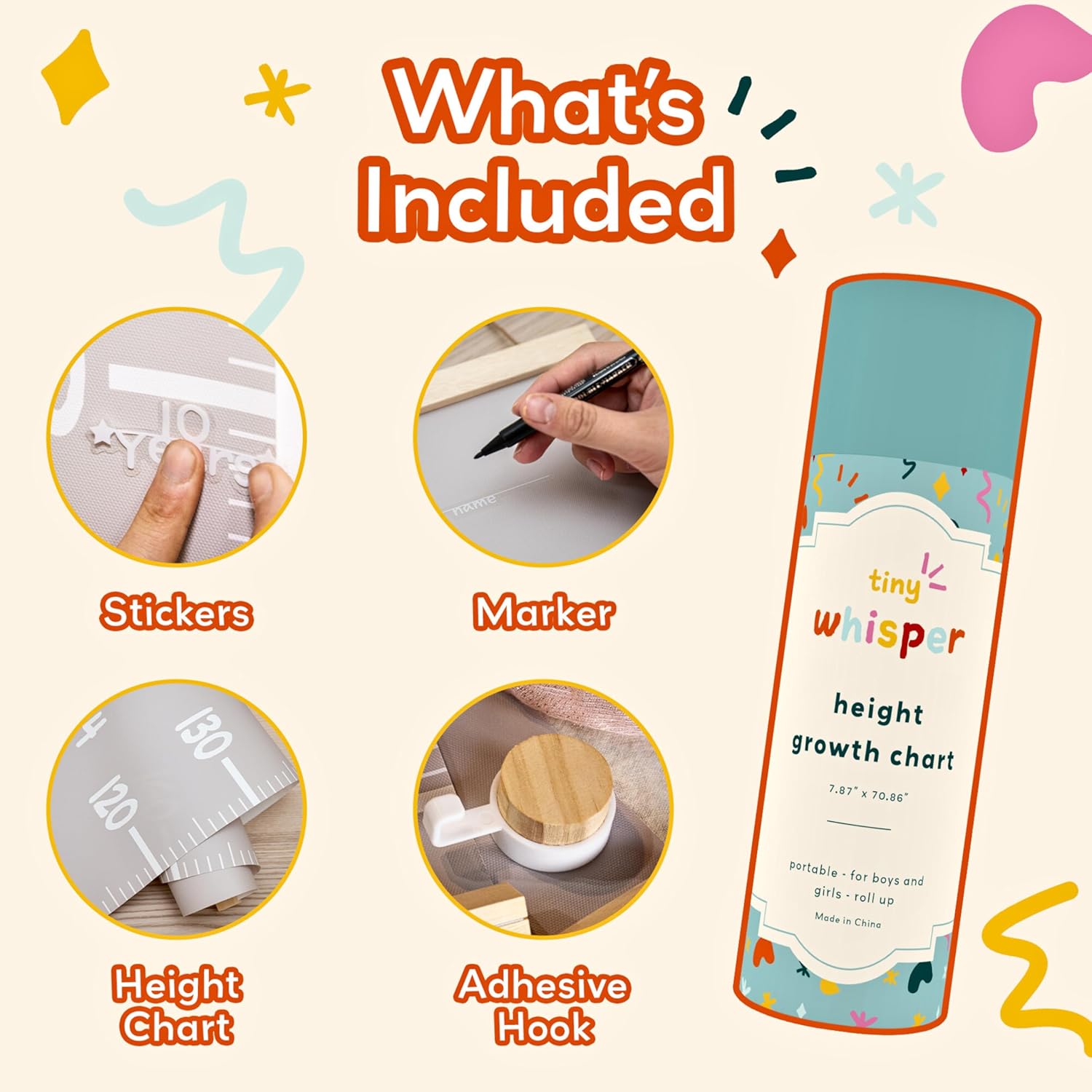 Height Chart for Kids Customizable Kids Height Wall Chart with Stickers, Marker & Hook Hanging Growth Chart Measurement for Wall Easy Installation for Baby Room Nursery and Playroom