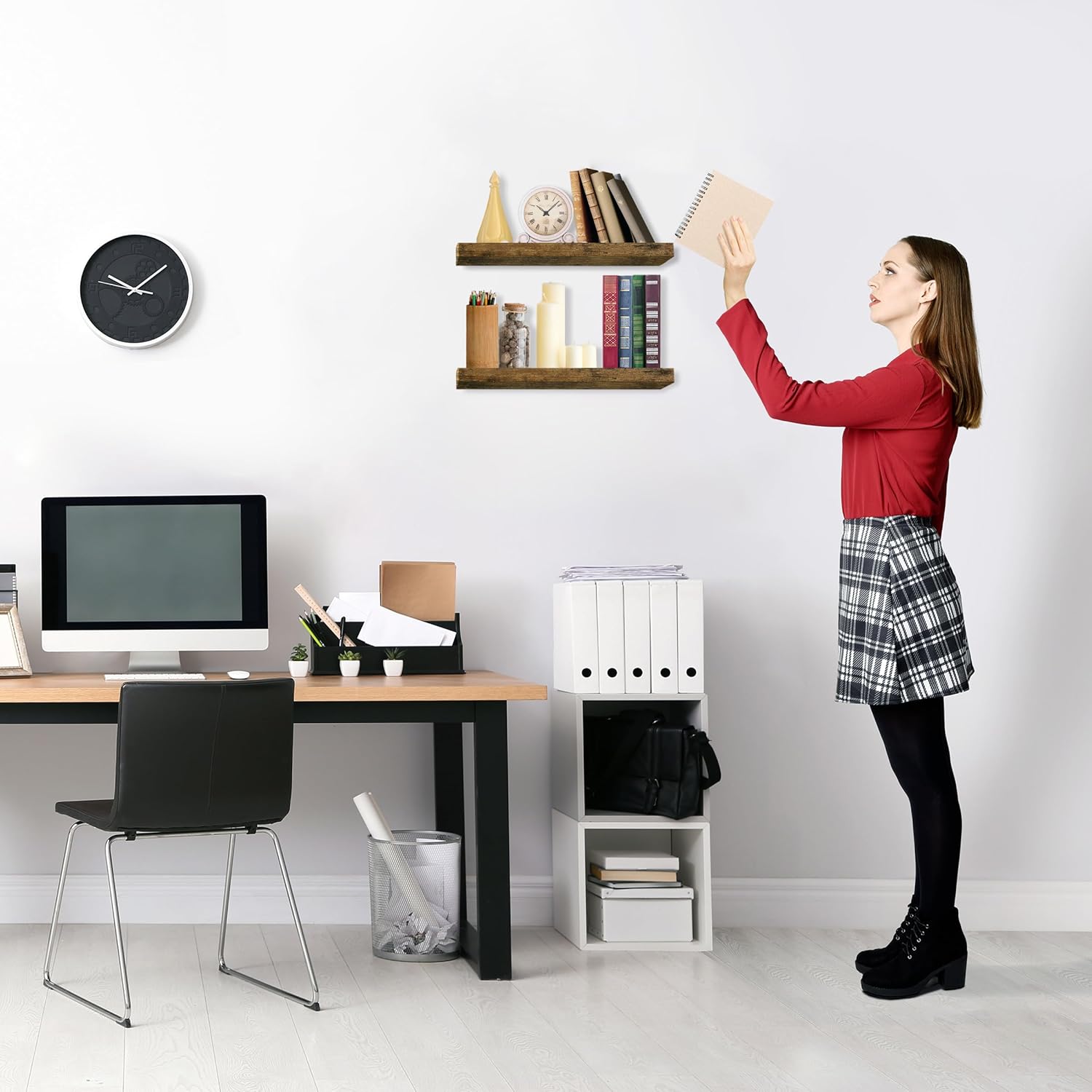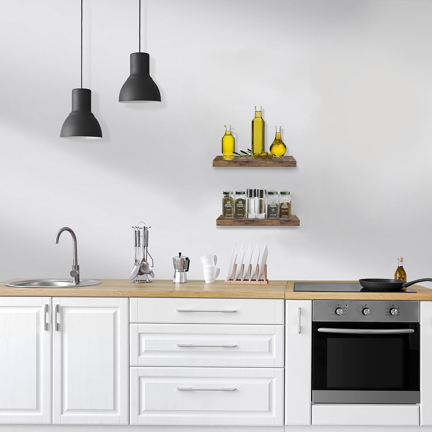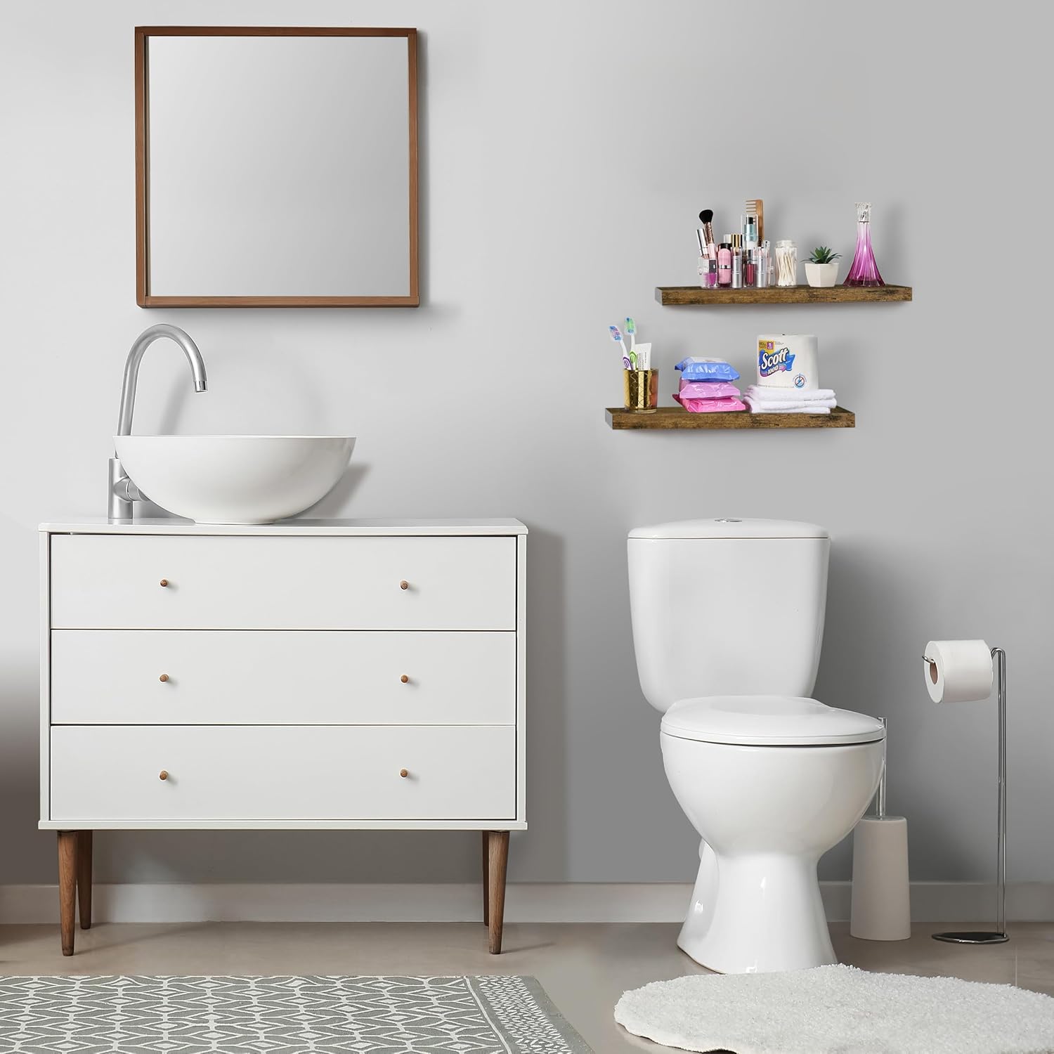 Sorbus Floating Shelves for Wall, Bathroom Shelves Wall Mounted for Kitchen, Bedroom, Bathroom Storage Over Toilet, Hanging Book Shelf for Home Decor Living Room (Rustic Brown, 2 Pack)