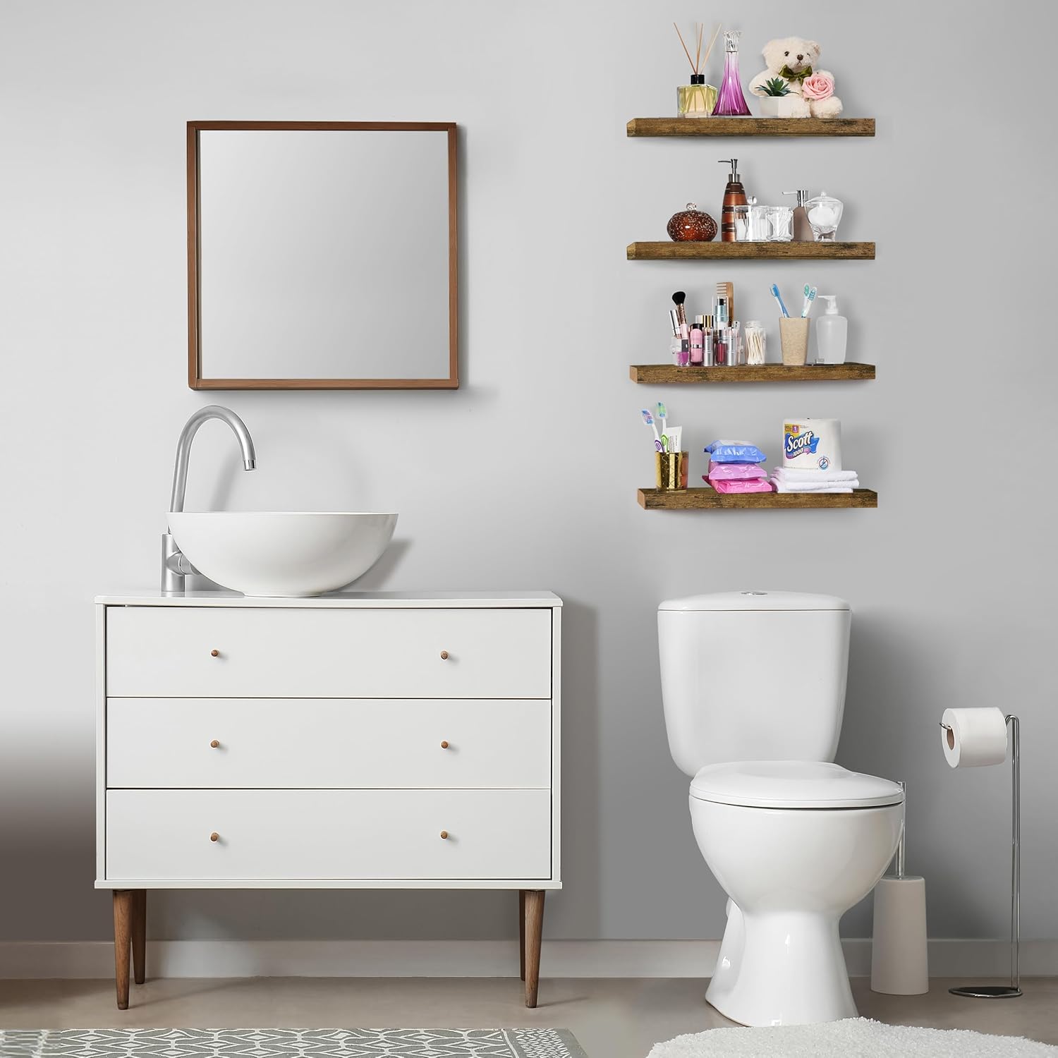 Sorbus Floating Shelves for Wall - 24" Bathroom Shelves, Wall Decor for Bedroom, Kitchen, Living Room, Home Decor & Book storage - Mounted Floating Shelf with Invisible Brackets (Rustic Brown, 4 Pack)