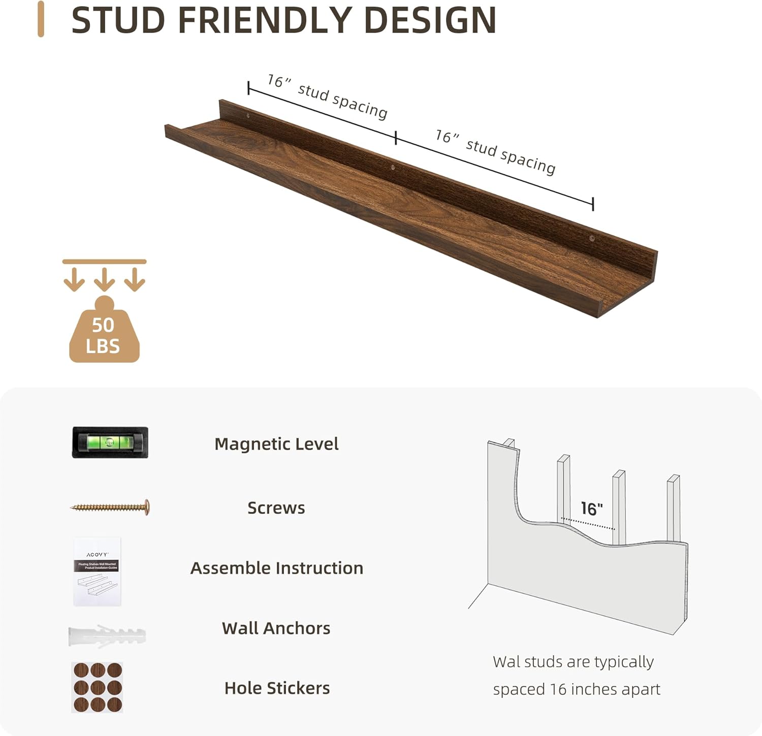 - 【Superior Quality】 Crafted from high-quality material, each floating shelf is designed for long-lasting durability. The pre-drilled mounting holes are spaced 16 inches apart, ensuring a secure installation into wall studs.
