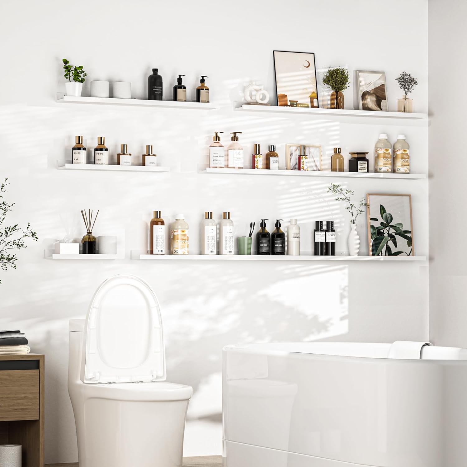 - Multi-Functional: Get creative and find more functions other than the long-picture ledge shelf. Heimlove storage ledge shelves can act as a kids' bookshelf, display shelf for collectible figures, and more. Perfect for decorating the living room, kitchen, bathroom, and nursery room.