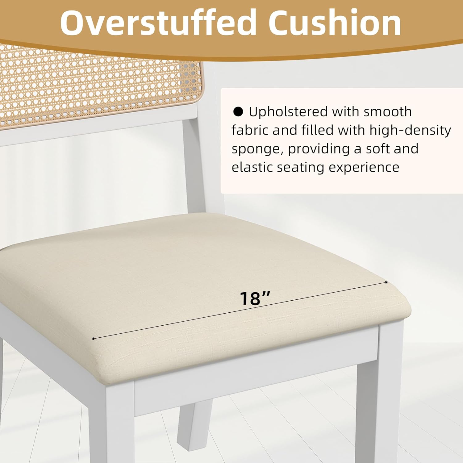 Westice Rattan Dining Chairs Set of 4, Farmhouse Natural Dining Room Chairs with Upholstered Cushion, Wood Armless Chairs for Kitchen/Restaurant, White