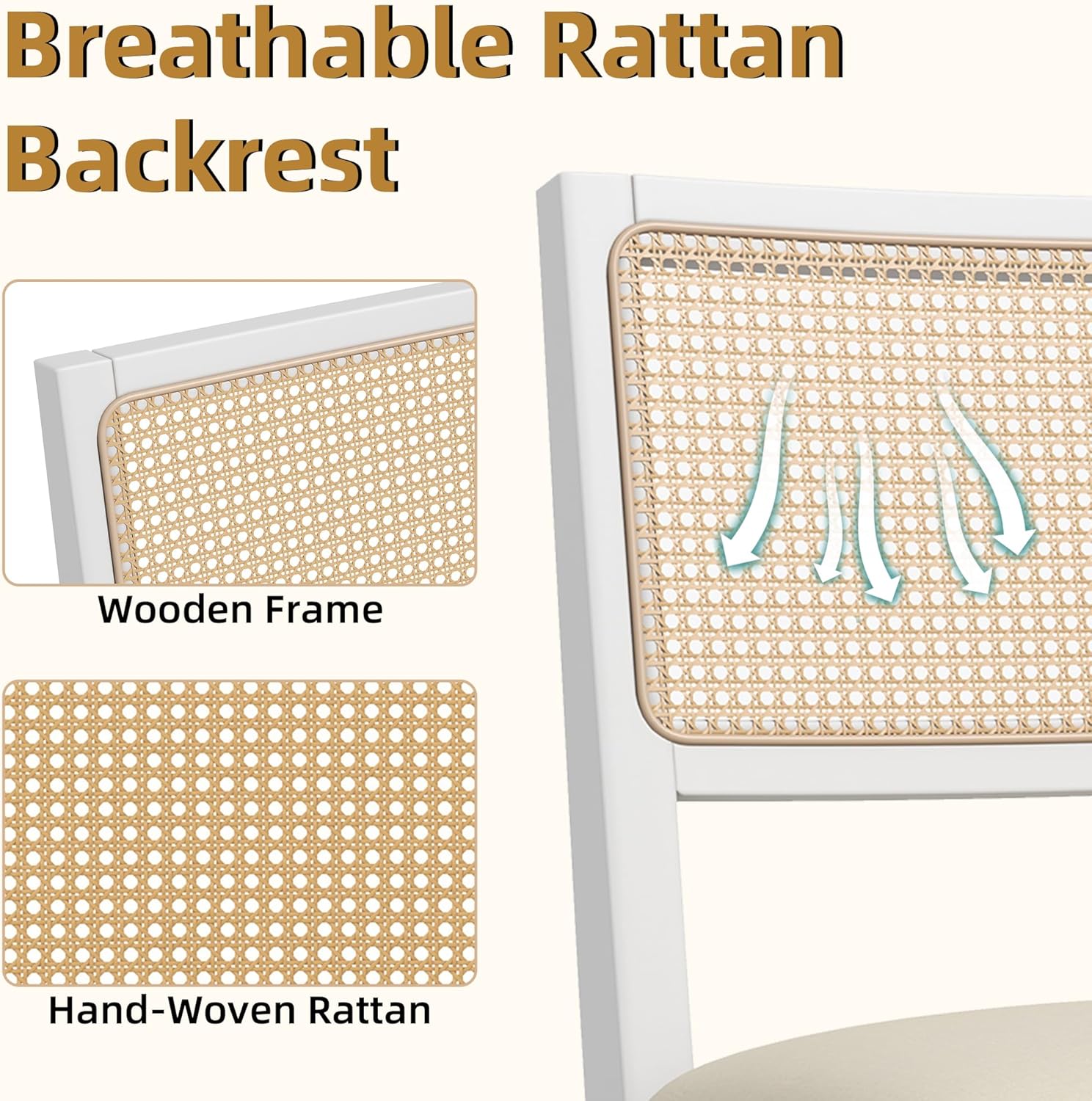 - 【Breathable Rattan Back】The hand-woven kitchen chairs with a natural open-weave design and rattan back promote good airflow, making them exceptionally comfortable, especially in warmer climates. The inherent flexibility of rattan adds a gentle give, further enhancing seating comfort
