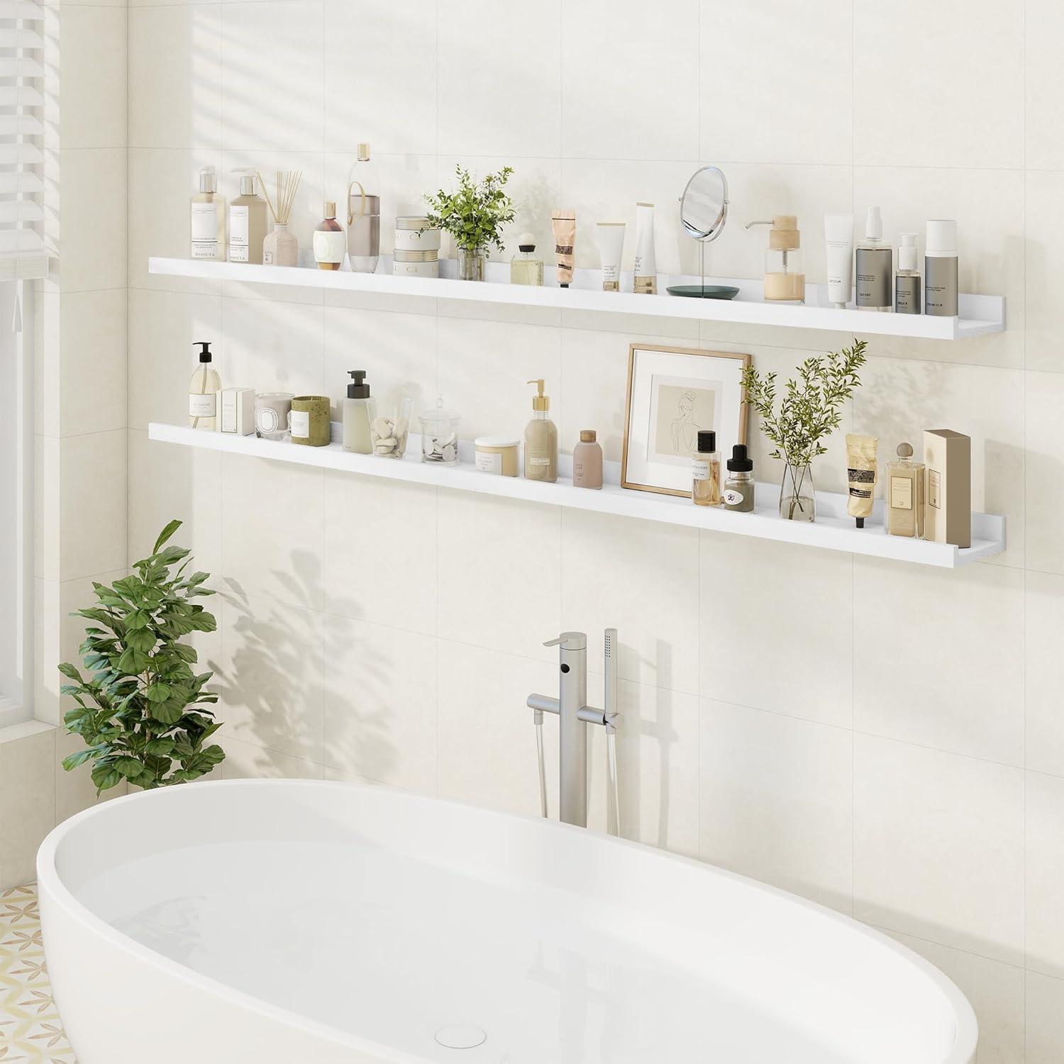 - Picture Ledge Design: Ideal for displaying photos, artwork, small plants, or collectibles, these shelves feature a thoughtful ledge design with a subtle lip and a shallow groove behind it. This design securely holds items in place while maintaining a clean, modern look.