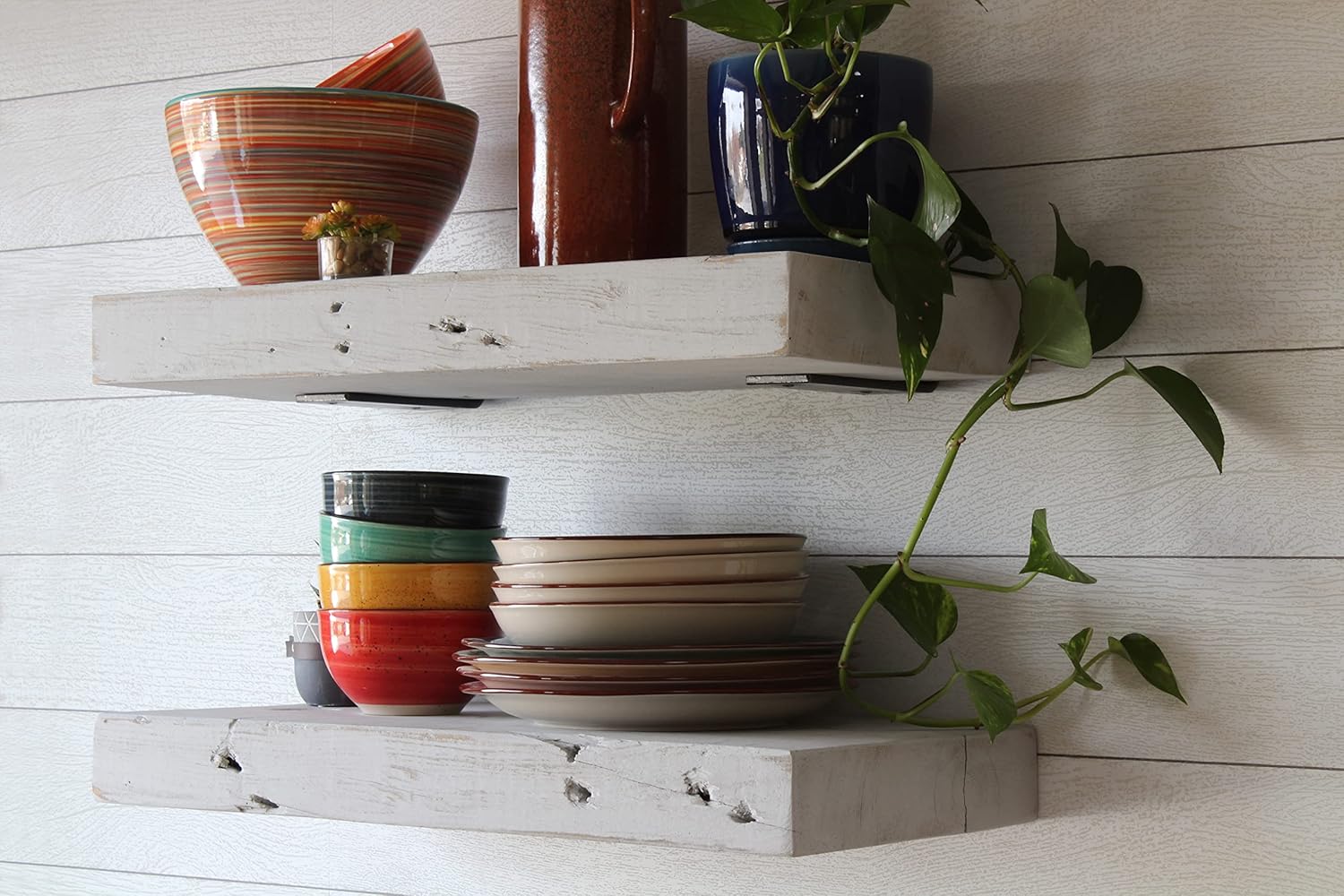 - MULTI-PURPOSE FARMHOUSE FLOATING WOOD SHELVES: Display dishes, books, plants and more on the versatile reclaimed wood planks made into natural wood floating shelves for wall. Our reclaimed barn wood is used to create a wonderful farmhouse shelf look. These shelves make gorgeous living room floating shelves, kitchen wall shelves, or simple dining room shelves. They are also useful as floating shelves for bedrooms, fulfilling your need for wall mounted shelves for the walls of any room!
