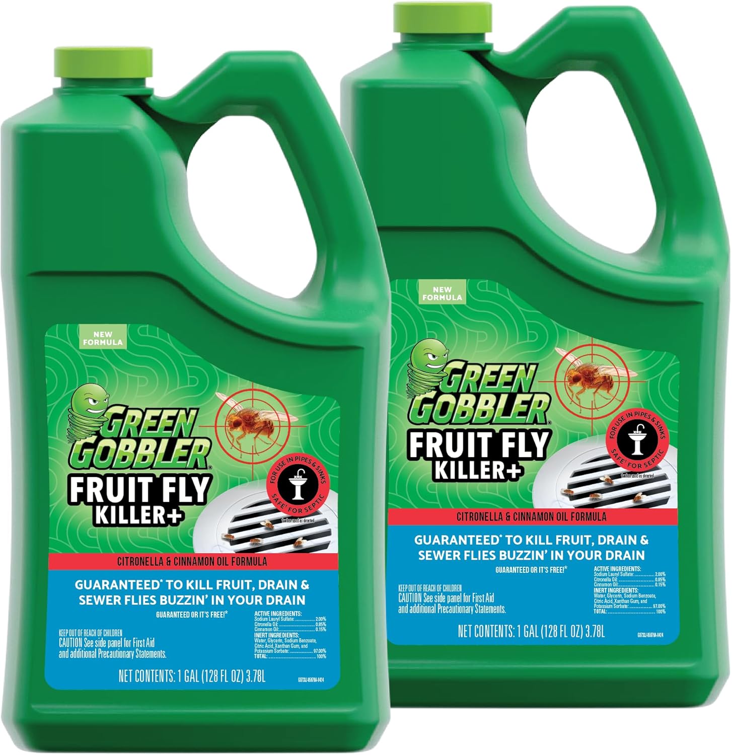 - KILL FRUIT, DRAIN & SEWER FLIES: Get rid of the fly infestation and get back to enjoying your space. Green Gobbler's thick gel formula clings to pipes to eliminate annoying drain fly infestations. It kills fruit flies, drain flies and sewer flies.
