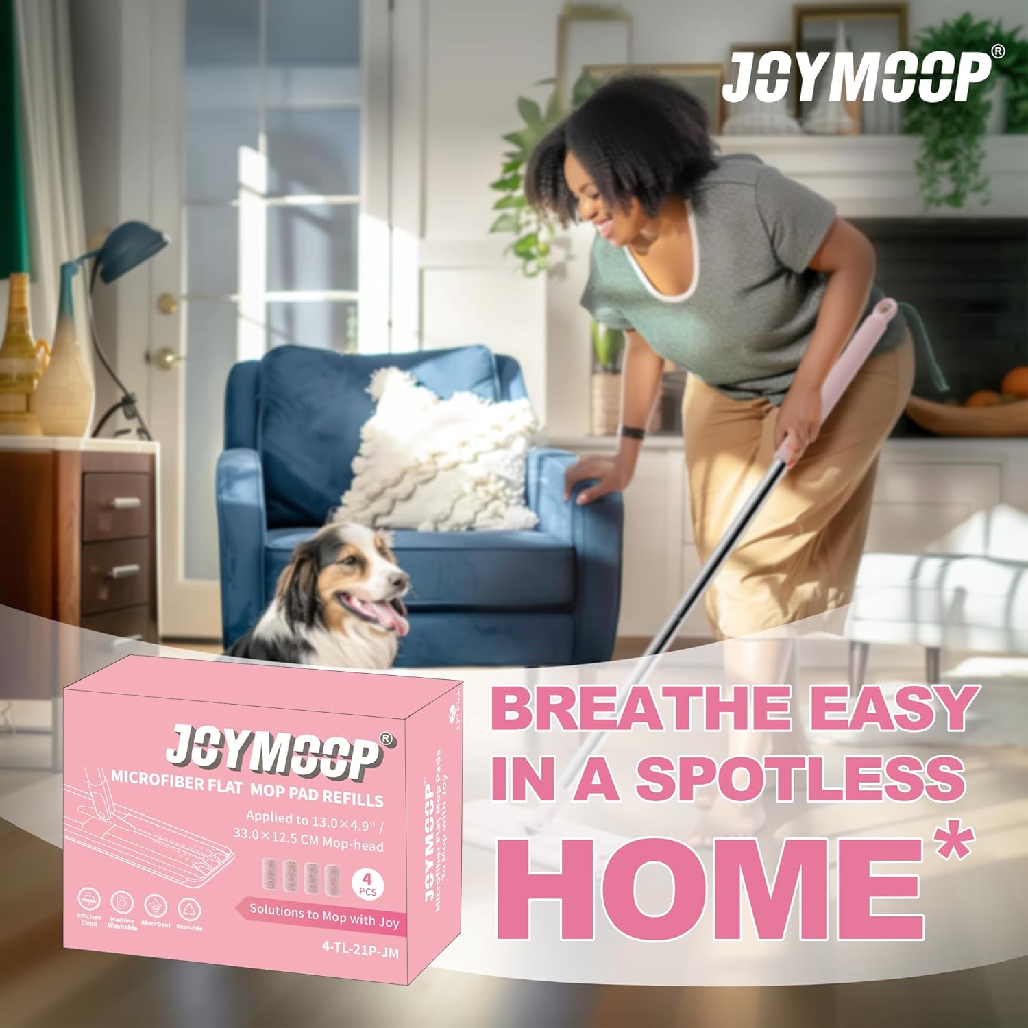 - [Mop-head Size] 13.0 × 4.9 inches. Regular replacement microfiber mop pads for JOYMOOP regular flat mops.