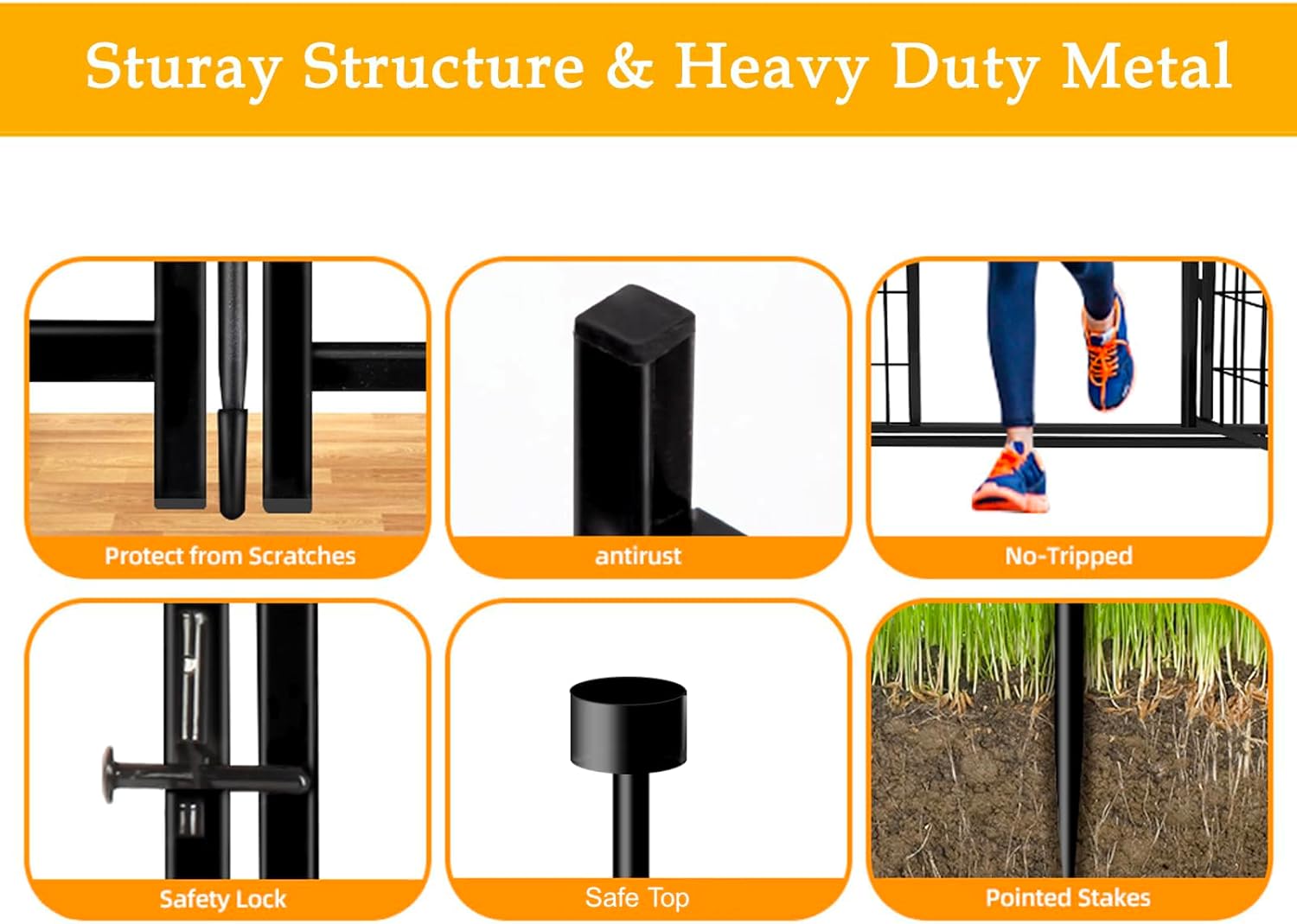 - Easy and Secure Installation:This Dog Fence Does Not Need Tools to Install, You Just Need to Align The Metal Rod with The Connecting Hole of The Two Sides of The Board and Insert It, You Can Connect Them, When You Use Outside, You Can Insert The Metal Rod Tip Into The Ground, The Fence Will be Very Stable, Will Not be Knocked Down Easily; When You Use It Indoors, You Can Wear A Rubber Protective Cover for The Metal Insert Tip So The Fence Won't Scratch Your Floor