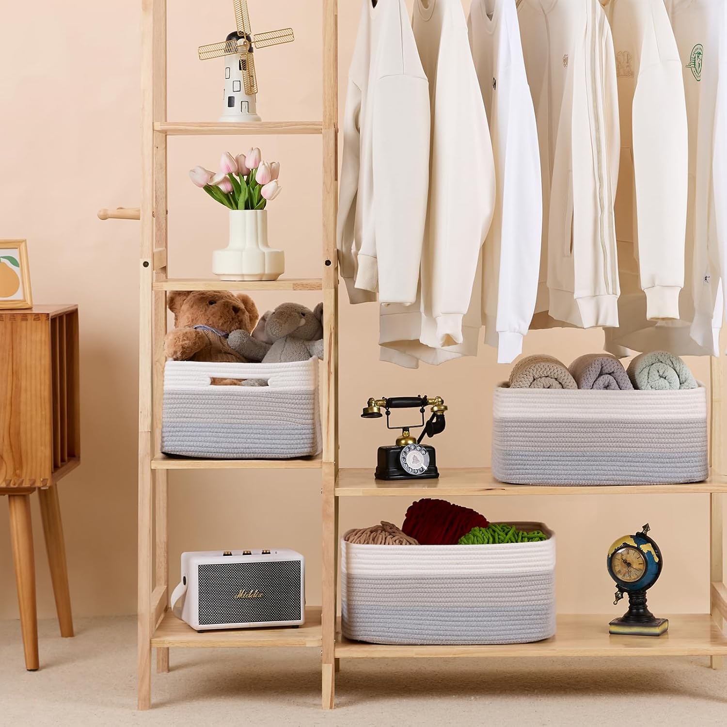 - [ Soft & Durable ]: Hand-stitched from high-quality natural cotton rope, our baskets are soft, durable, and baby-friendly, with no odor or sharp edges. Great for nurseries and closet organization