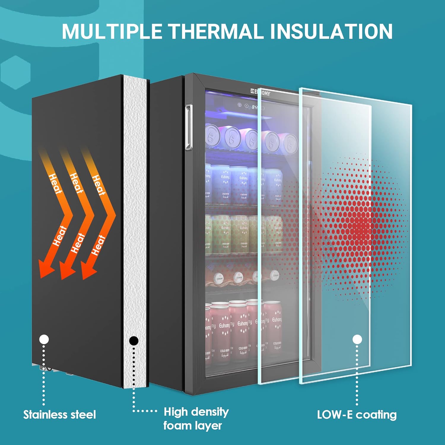 - POWERFUL COOLING & INSULATION - EUHOMY beverage fridge using new air cooling technology, the mini fridge for bedroom with 360° full-angle circulating air duct cooling will be more even, the small refrigerator uses tempered glass door with low-e film and high tightness door seal, to achieve refrigeration and at the same time to ensure that the cold air does not spill out