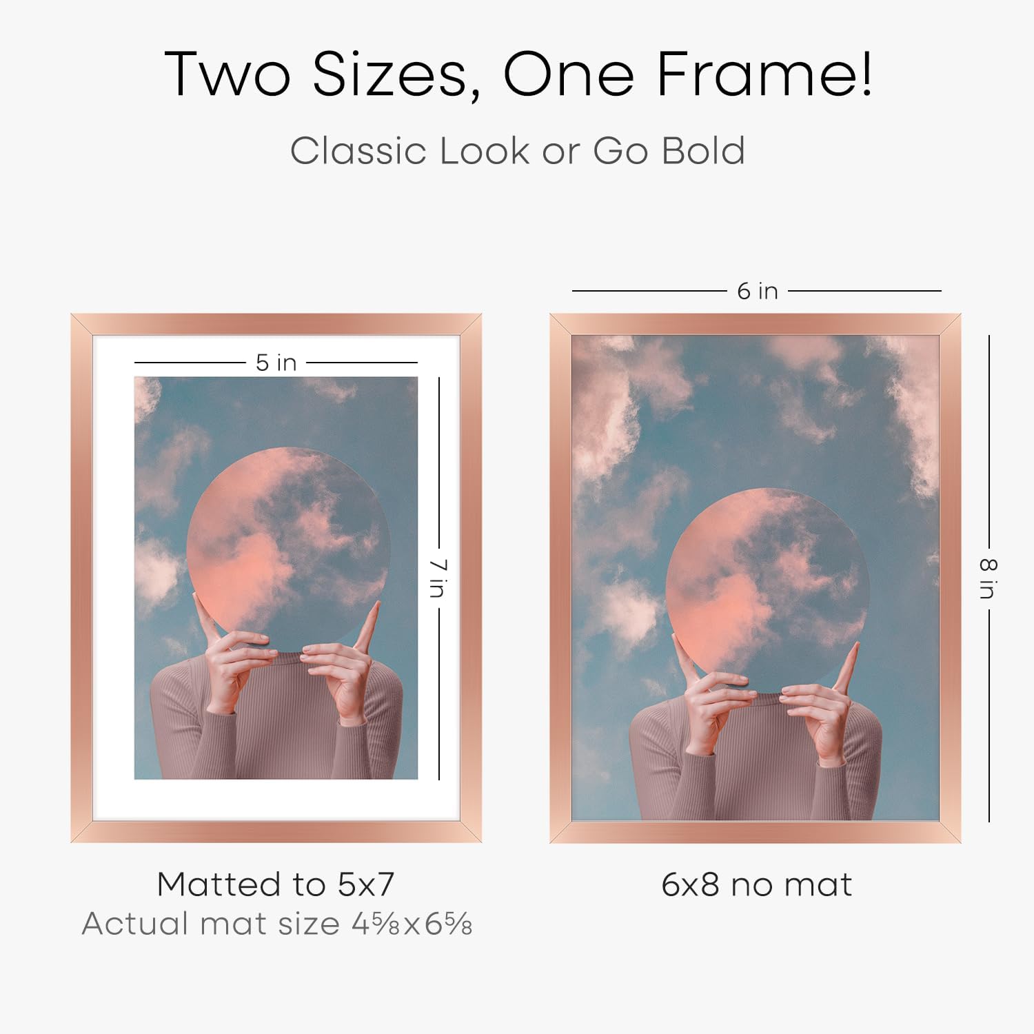 - MATTED OR EDGE-TO-EDGE—YOUR CALL. A crisp 5x7 white mat creates negative space, elevating your image with gallery precision. Or remove it for 6x8 bold, uninterrupted impact.