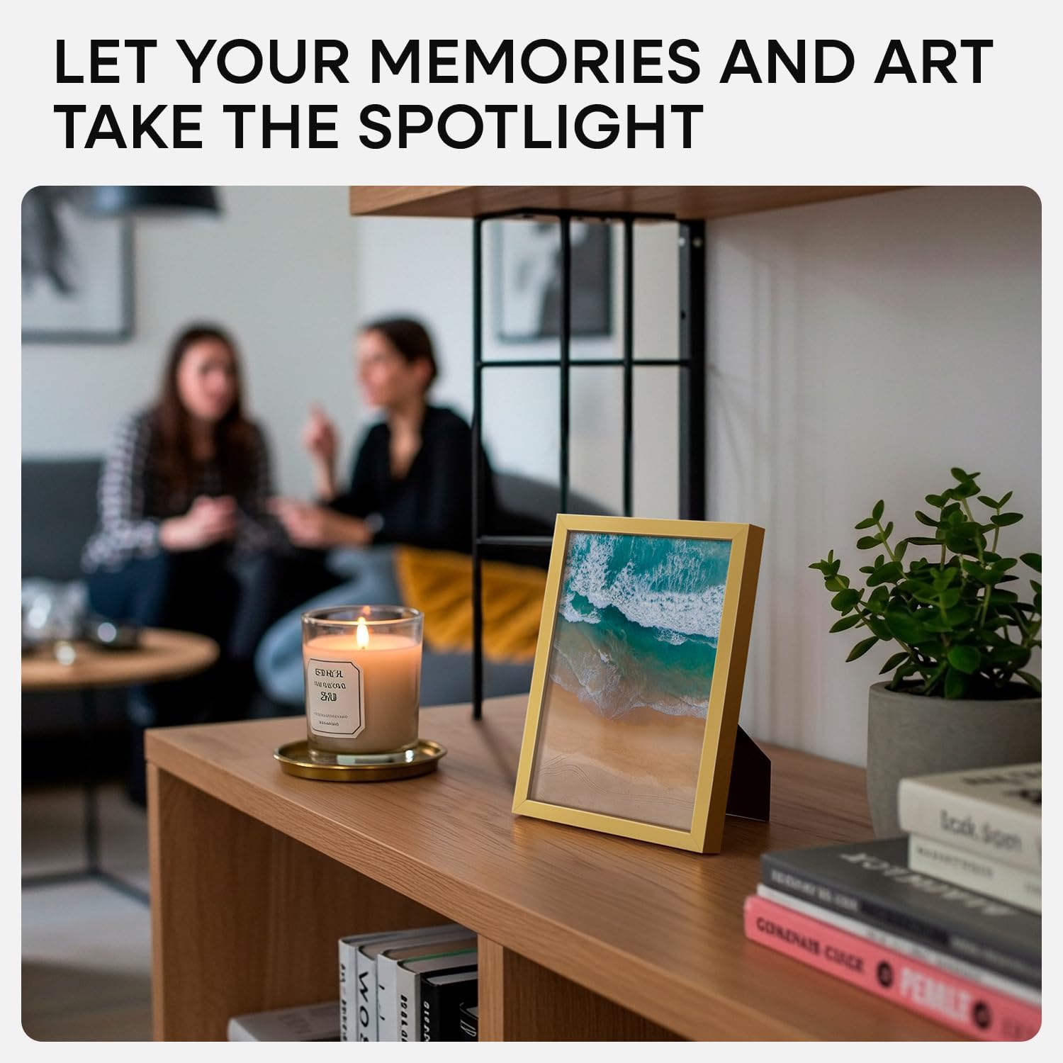- SUBTLE GLOW. SIMPLE FORM. This frame’s polished champagne gold hue adds just enough shine to catch the eye. Clean lines and a minimalist build keep the look modern and uncluttered.