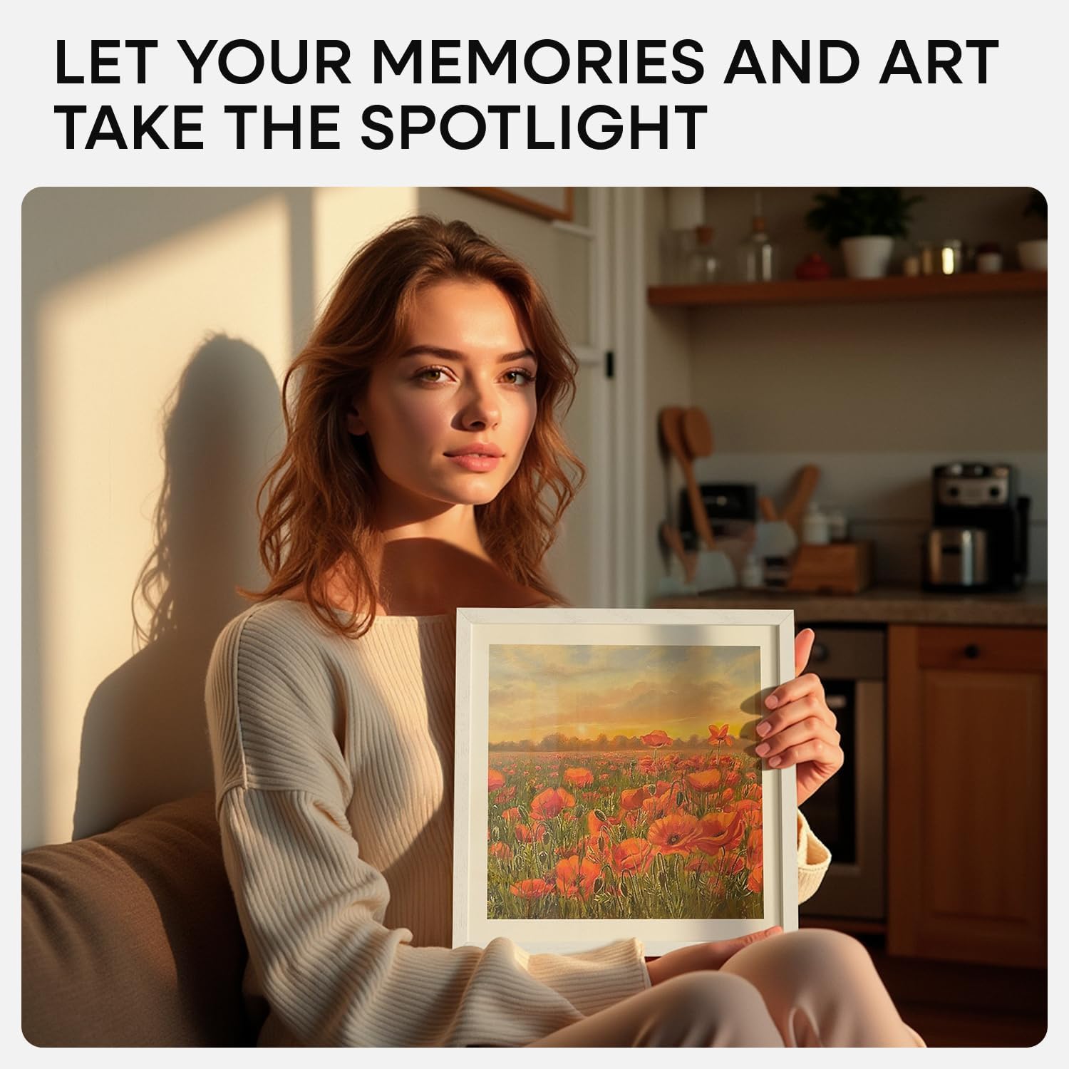 Homeforia 11x11 Picture Frame White, High-End Oak 11 x 11 Square Wooden Frames with Mat 9 by 9 inch Photo, 11by11 Wood Frame Matted to 9x9 Print, Wall Hanging Frame, Tempered Glass, Wall Kit, Set of 1