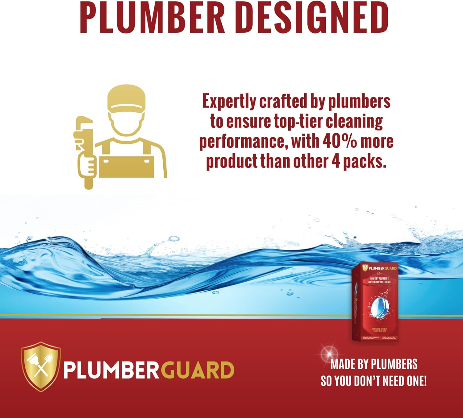 - Effective Cleaning: PLUMBERGUARD is formulated with a low-impact chelating agent and whitening agents, designed by plumbers for a powerful yet gentle clean. It actively whitens while fighting tough stains, rust, mineral deposits, and limescale buildup, ensuring a pristine toilet bowl without harsh chemicals.