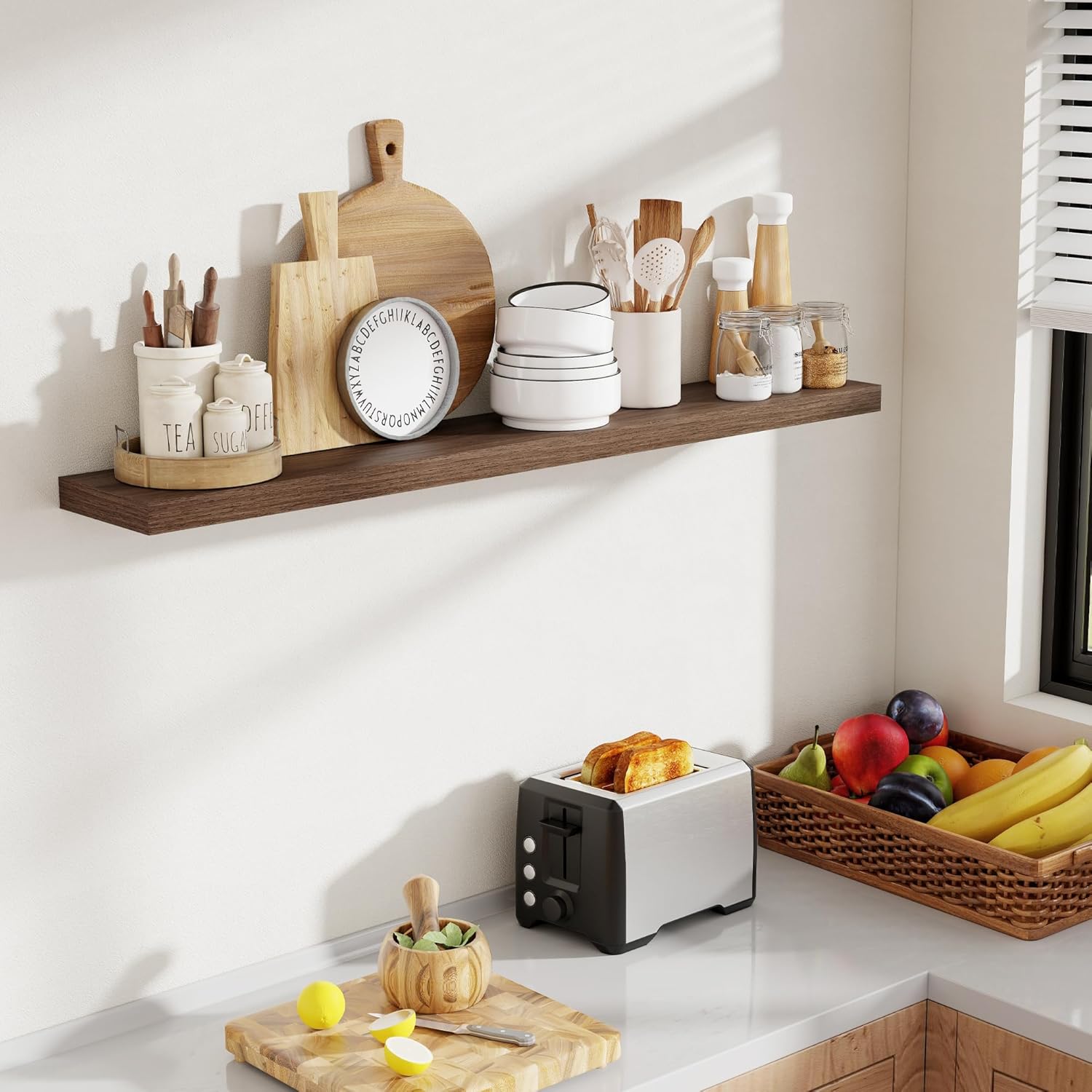 - [MAXIMIZE YOUR LIVING AREA]: Free up floor space with these floating wall shelves that are perfect for small apartments, kitchens, and compact living spaces. They create the illusion of a larger room, allowing you to store and showcase plants, collectibles, and other decor without taking up valuable floor space.