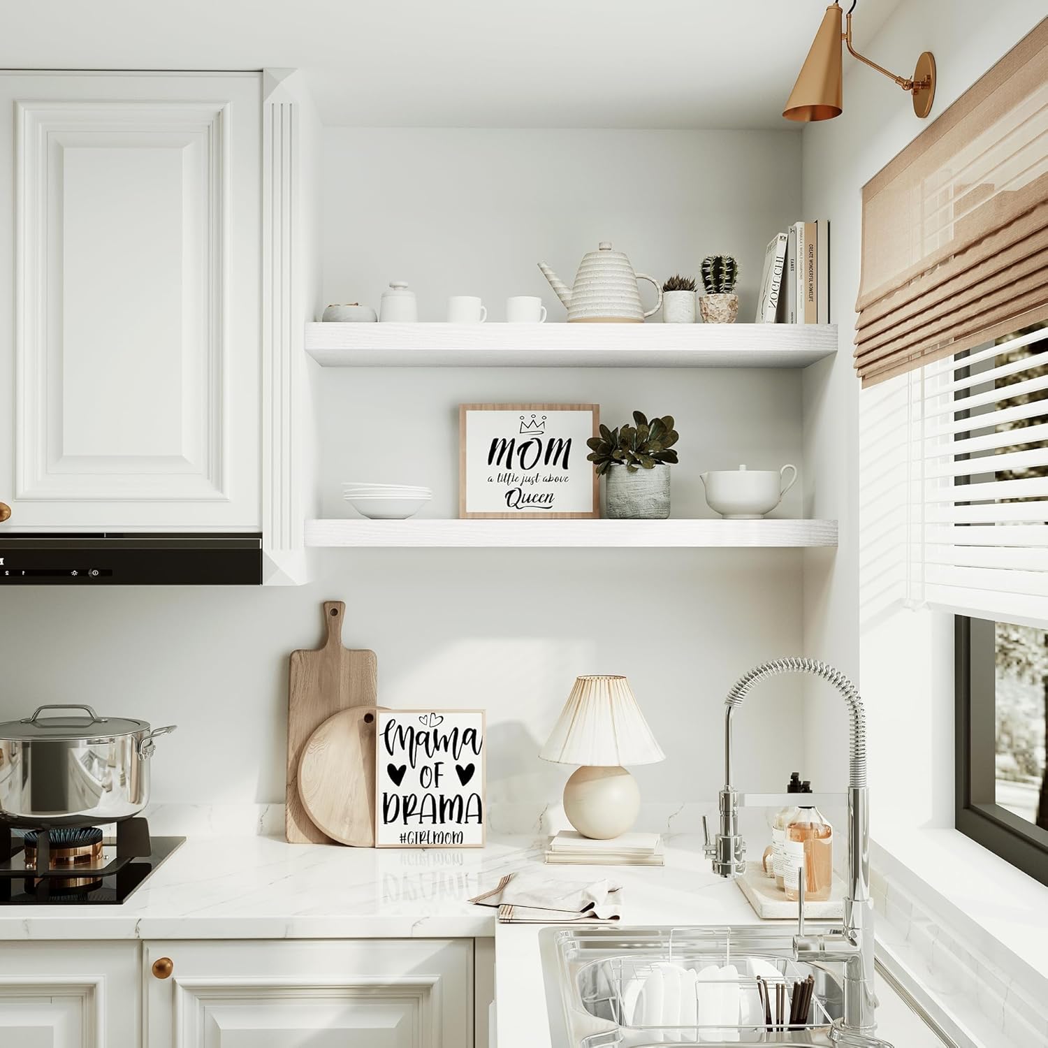 - Versatile & Functional - Our Decorative shelf for wall Adds character to any modern, traditional, rustic, or farmhouse decor home & kitchen styles.These shelves for wall decor above a small desk in your guest room, desks, fireplaces, over toilet storage shelf,living room wall decor, corner bookshelf, bathroom decor, office wall decor,or vanities and so on. If you are seeking easy-to-install, stylish floating shelves to add a contemporary touch to your home, these shelves are an excellent choice.