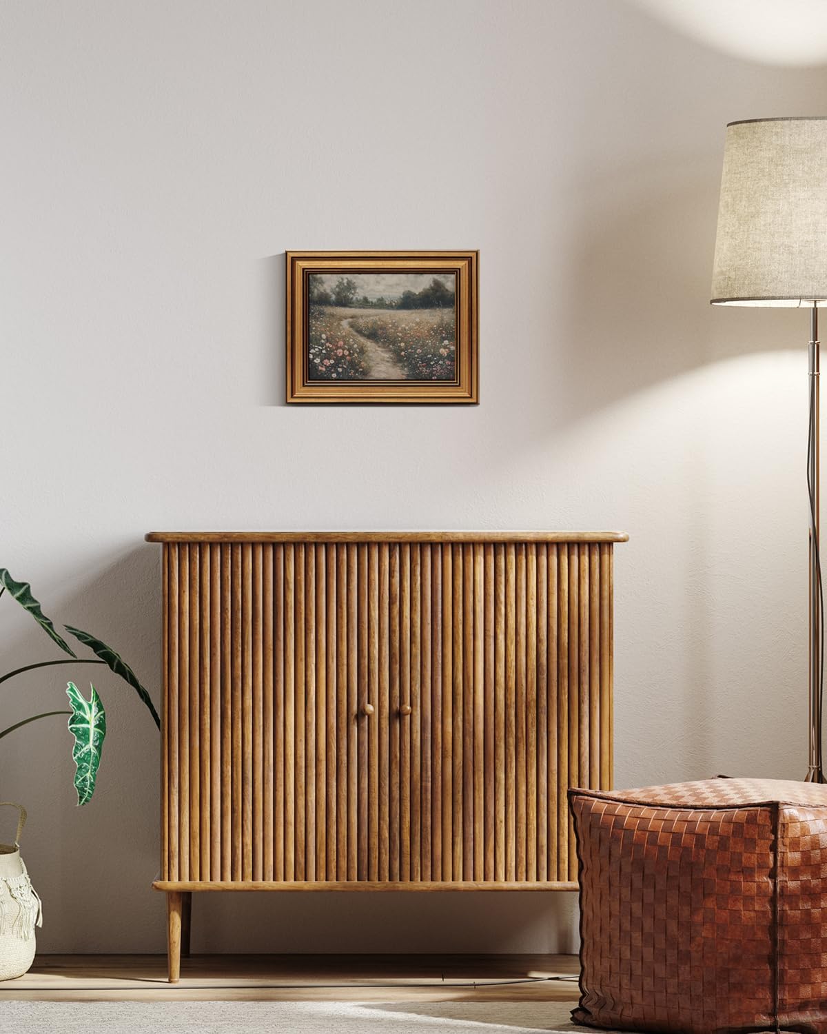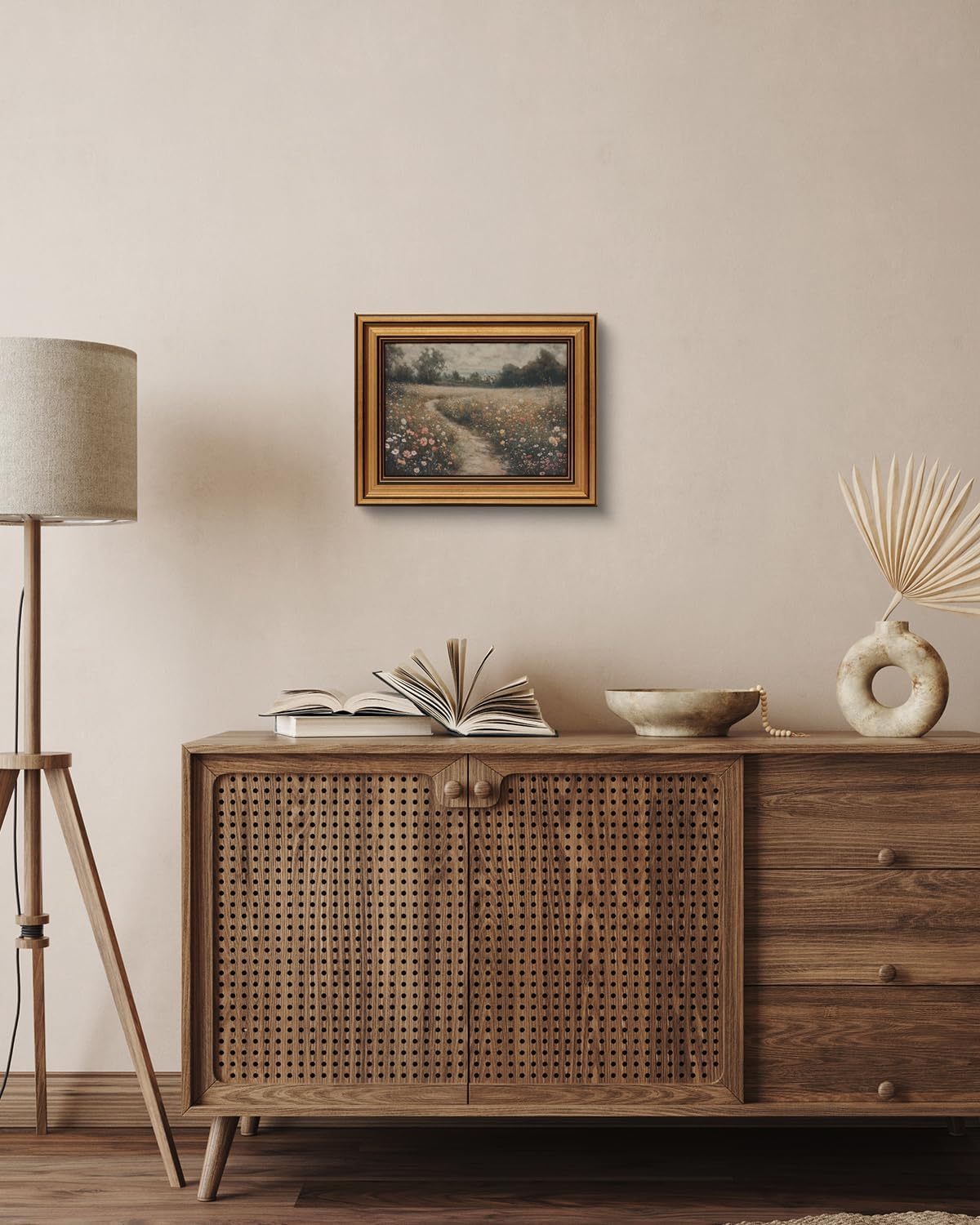 HUARCEY Gold Framed Vintage Wall Art for Living Room, Flowers Painting Prints Shelf Decor for Kitchen, Landscape Bedroom Wall Art, Christmas Gifts for Friends or Family (Flowers Path - 8"x10")
