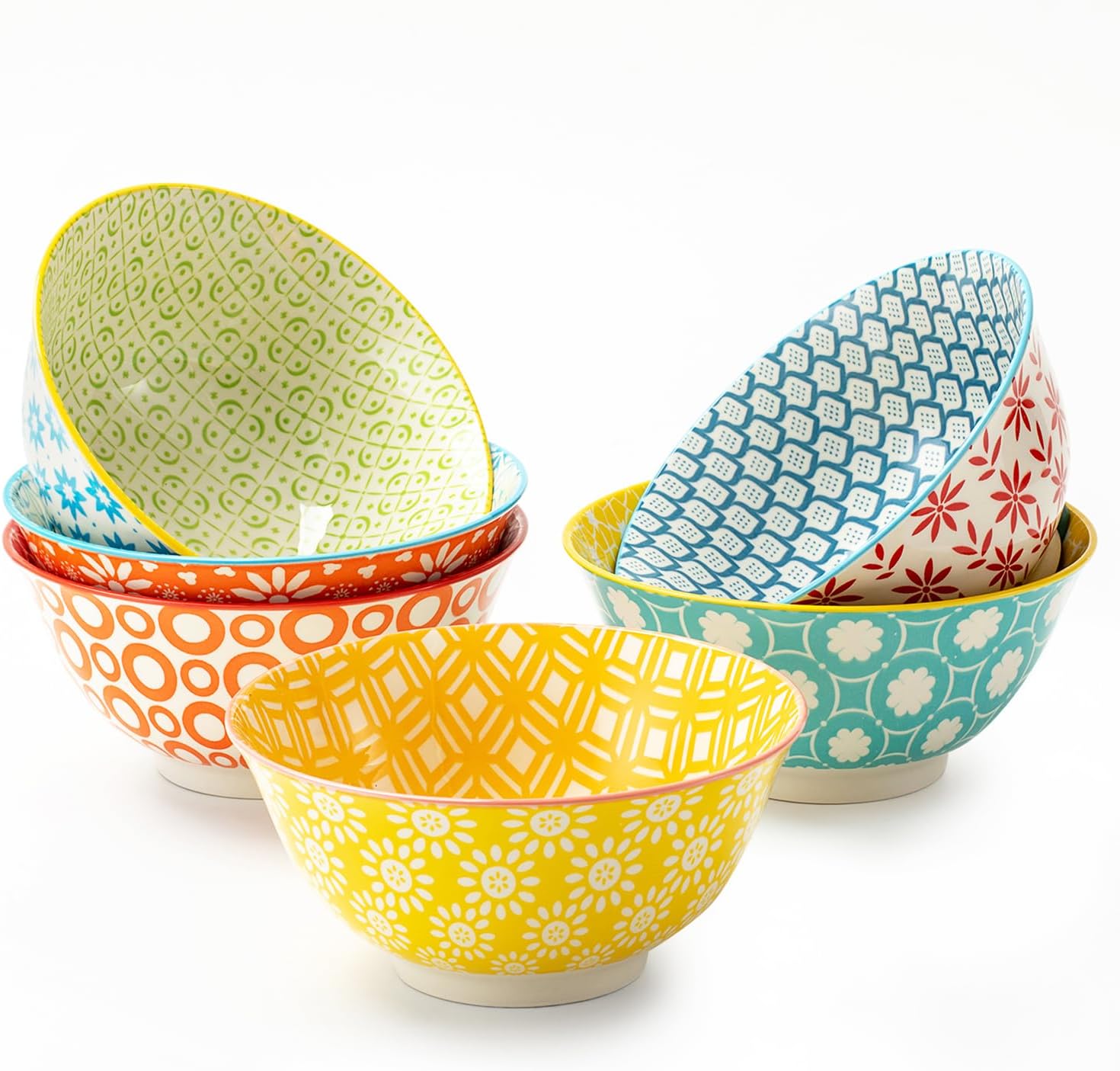 - 🌟Multiple colors🌟6 in large ceramic cereal bowl can avoid spills and enhance the dining experience. A variety of color combinations, with bright colors and cute patterns, to add a touch of bright color to your table.