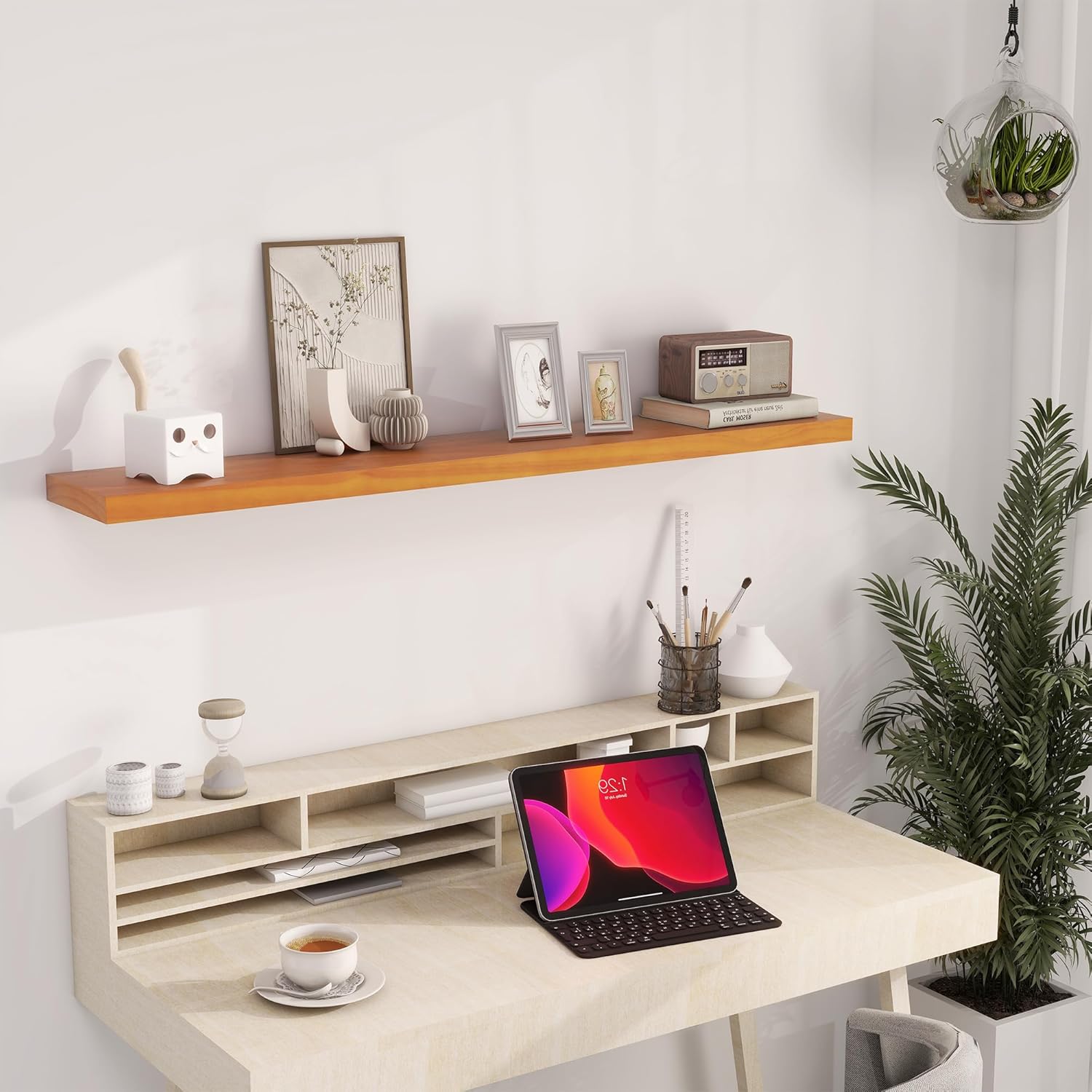 - Premium Wooden Floating Shelves -Unlike others, they are beautifully-finished, fantastic-smelling solid pine,and they are handcrafted out of finest solid pine wood measuring 48" x 8" x 1.38",revealing its own character of knots and natural wood grain, making each ledge a little different but equally stunning.