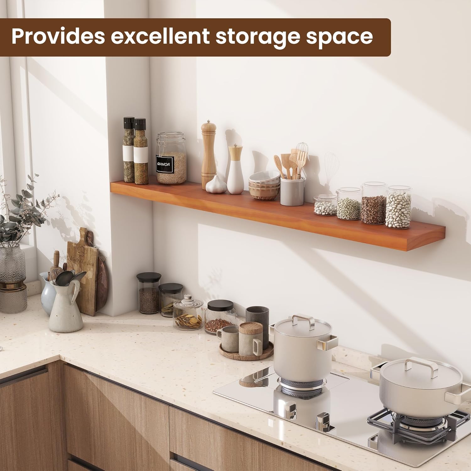 - Stylish Storage and Decor -These shelves are the perfect solution for greatful space in our pantry. it can hold pictures, candles and other small trinkets,Add these wall floating shelves to your kitchen, bedroom, bathroom, office, or living room for achieving a stylish décor upgrade that combines functionality and rustic charm.
